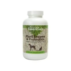 Animal Essentials Plant Enzyme and Probiotics formula provides protein molecules that are not stored in the body which work to breakdown food into useful components for the body. While animal enzymes tackle only one area of the digestive system, plant enzymes work throughout the whole system and remain active in the body longer.