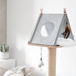 The tree forgoes carpet and instead features a memory foam cushion for snoozing and a felt pad. The feather ornament will provide hours of batting around fun and the tree itself is customizable and can be combined with other Beonebreed cat furniture! Some assembly is required to start the fun.