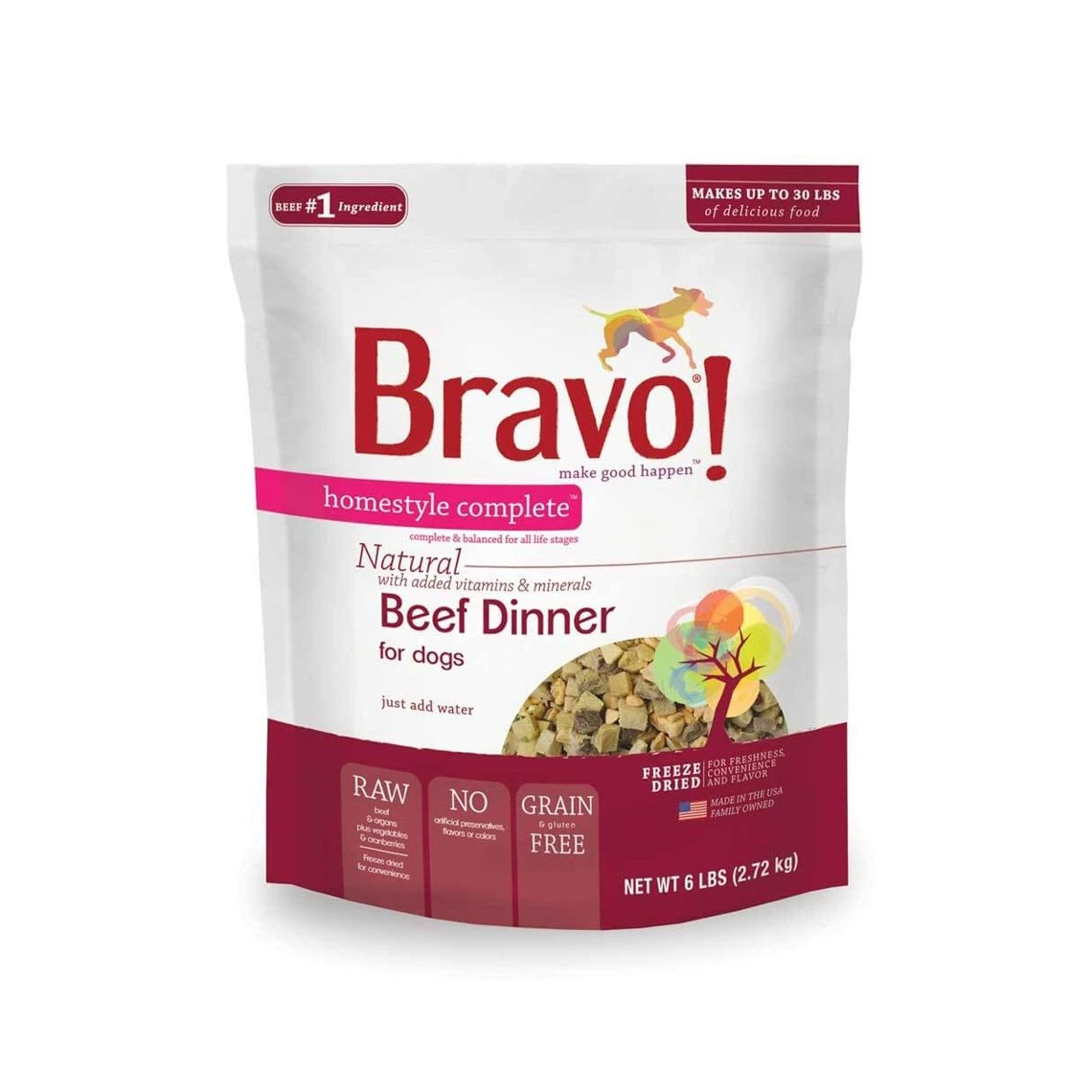 Each Bravo! Homestyle Complete Freeze-Dried Dog Dinners is grain-free and gluten-free and has no artificial preservatives, flavors, or colors. Your dog will only receive the wholesome goodness of meat and vitamin and mineral rich fruits and vegetables, like cranberries, green beans, and kelp.