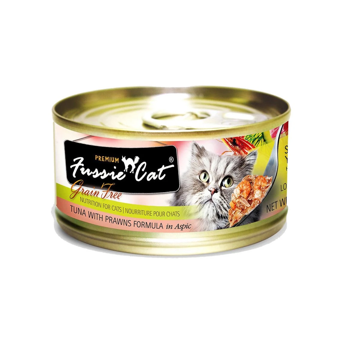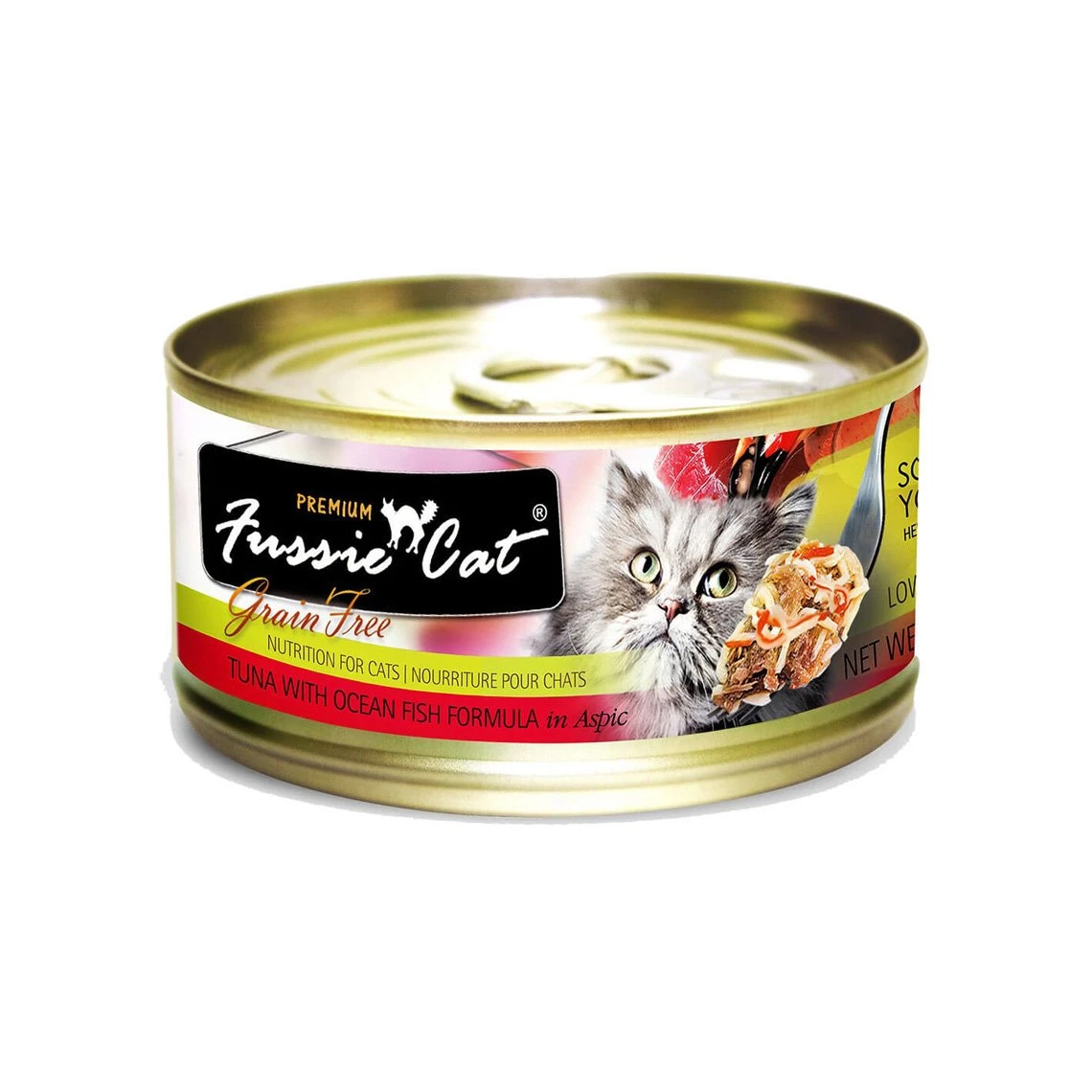 This amazing line of cat food gives your cat the variety and quality they love all at an affordable price. Every flavor of Fussie Cat Cat Food is made in a human consumable facility and features a high quality meat source as the first ingredient. Every formula has the main protein shredded in a delicious gravy, giving your cat visible slices of meat to enjoy and a familiar, flaky texture she’ll love. This includes flavorful, nutrient rich slices of delicious chicken and tuna. The seafood in Fussie Cat Canned Cat Food comes from the South Pacific, an area where mercury levels and pollutants are at their lowest possible levels. These sea foods include unique ingredients like New Zealand green lipped mussels (high in chondroitin), whole prawns, whole anchovies and whole white fish (all high in essential fatty acids). These foods are a great source of DHA and tested to be one of the most palatable cat foods on the market.
