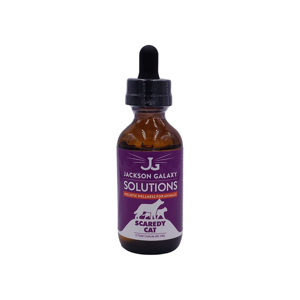 Jackson Galaxy Spirit Essences Scaredy Cat Flower Essences Solution is a powerful herbal tincture to aid in stress and anxiety in cats. This natural and safe flower essence brings your pet back to balance when administered 3-4 times a day. If your pet is a scaredy cat try Jackson Galaxy’s popular formula.