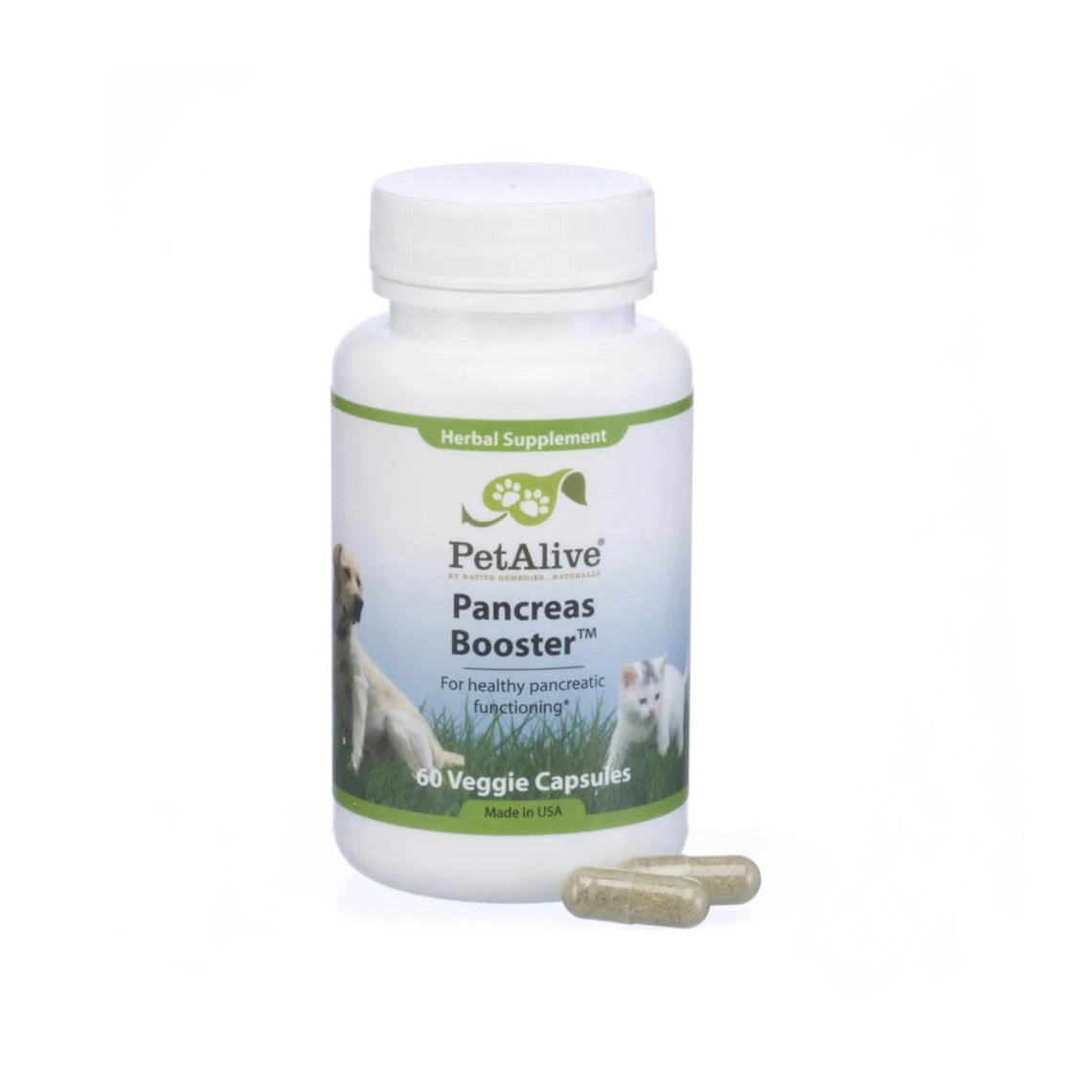 PetAlive Pancreas Booster promotes pancreatic health and digestive functioning. This 100% herbal remedy supports the pancreas in its creation of important enzymes needed during the digestive process. Pancreas Booster is also an excellent overall tonic supplement, which promotes the breakdown of foods in the intestines to support pancreatic health and vitality.