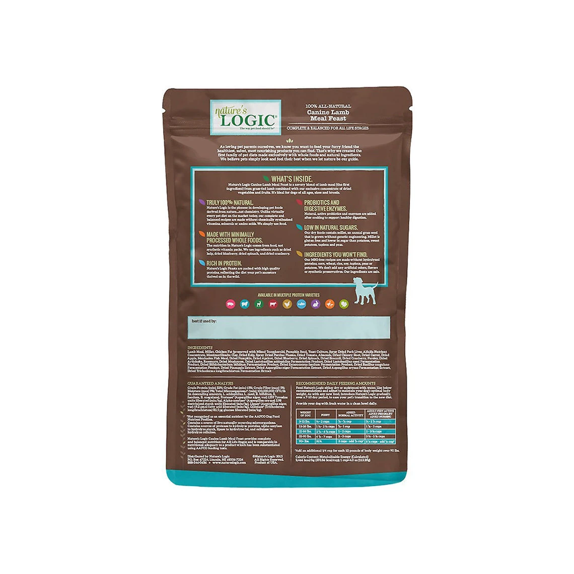 Nature’s Logic Canine Lamb Meal Feast is a savory blend of lamb meal (the first ingredient) from grass-fed lamb combined with our exclusive concentrate of dried vegetables and fruits.
