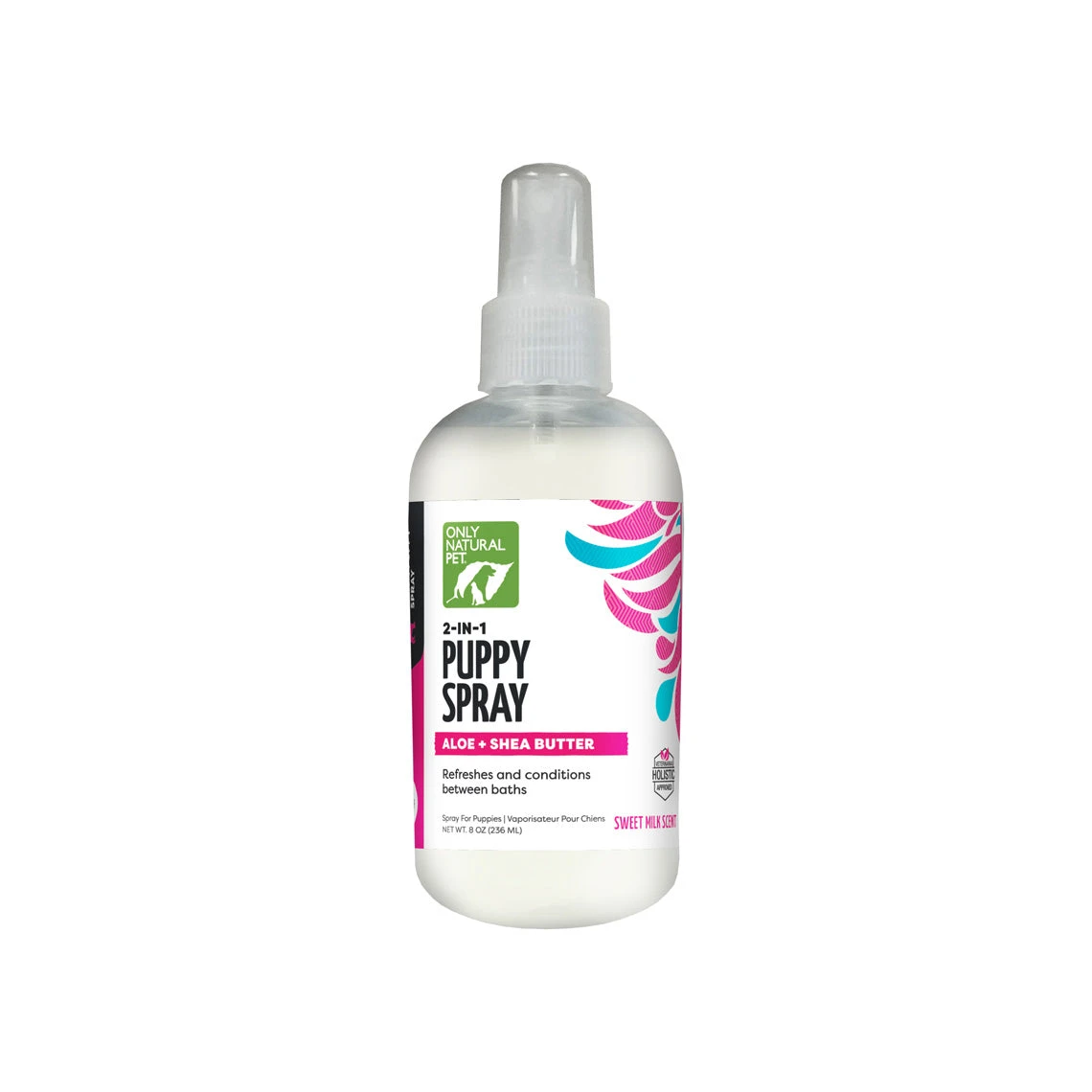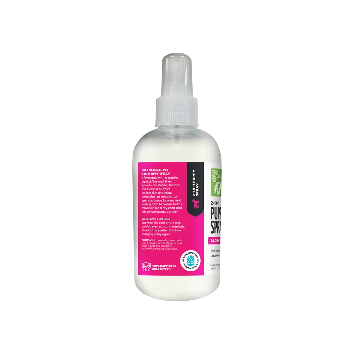 Specially pH balanced for puppies, this refreshing puppy spray is made with human quality ingredients and has no animal testing. Only Natural Pet 2-in-1 Puppy Spray is non-toxic and biodegradable with no sulfates, parabens, phosphates, phthalates, DEA, synthetic dyes or perfumes. Plus, each bottle is made from 25% post-consumer recycled plastic.