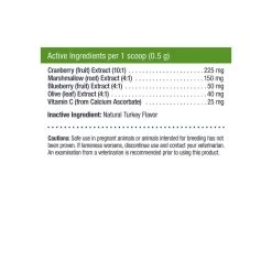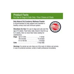 Only Natural Pet Cranberry Wellness Powder contains a unique set of ingredients that work together to support a healthy urinary tract in cats and dogs. Pets prone to recurrent pathogenic urinary tract or bladder problems or struvite crystals in the urine have benefited from the addition of these key substances to their diet. This cranberry supplement formula may offer benefits to the urinary tract through the following actions.Â