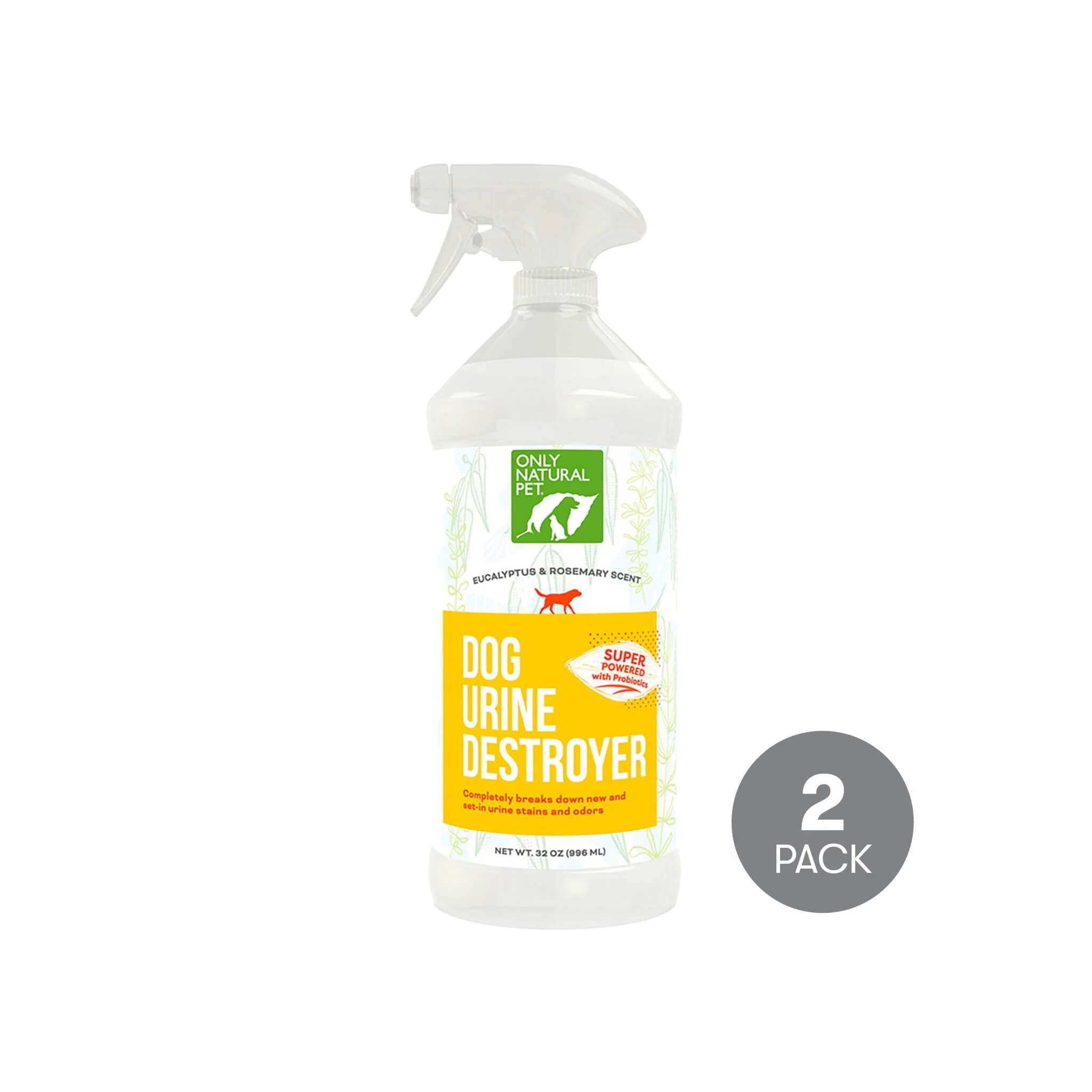 Only Natural Pet Dog Urine Stain & Odor Destroyer Probiotic Spray for Dogs comes in a 2 Pack so you never have to worry about running out!