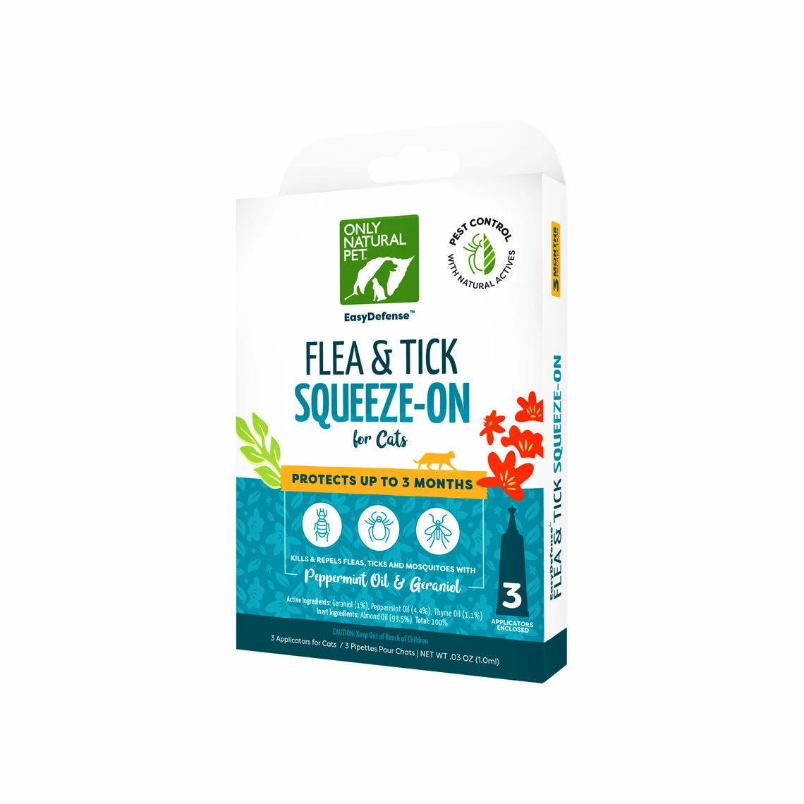 EasyDefense Flea & Tick Squeeze-On for Cats uses plant-based active ingredients to effectively kill and repel fleas, ticks and mosquitos and to prevent bites, rashes and hot spots. This topical formula is easy to apply and contains no synthetic pesticides, ensuring natural, effective long-term protection.