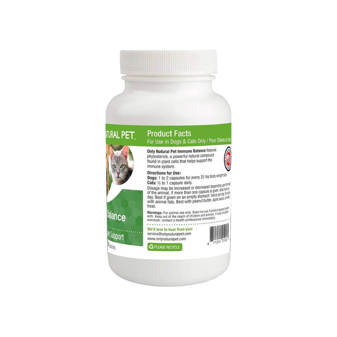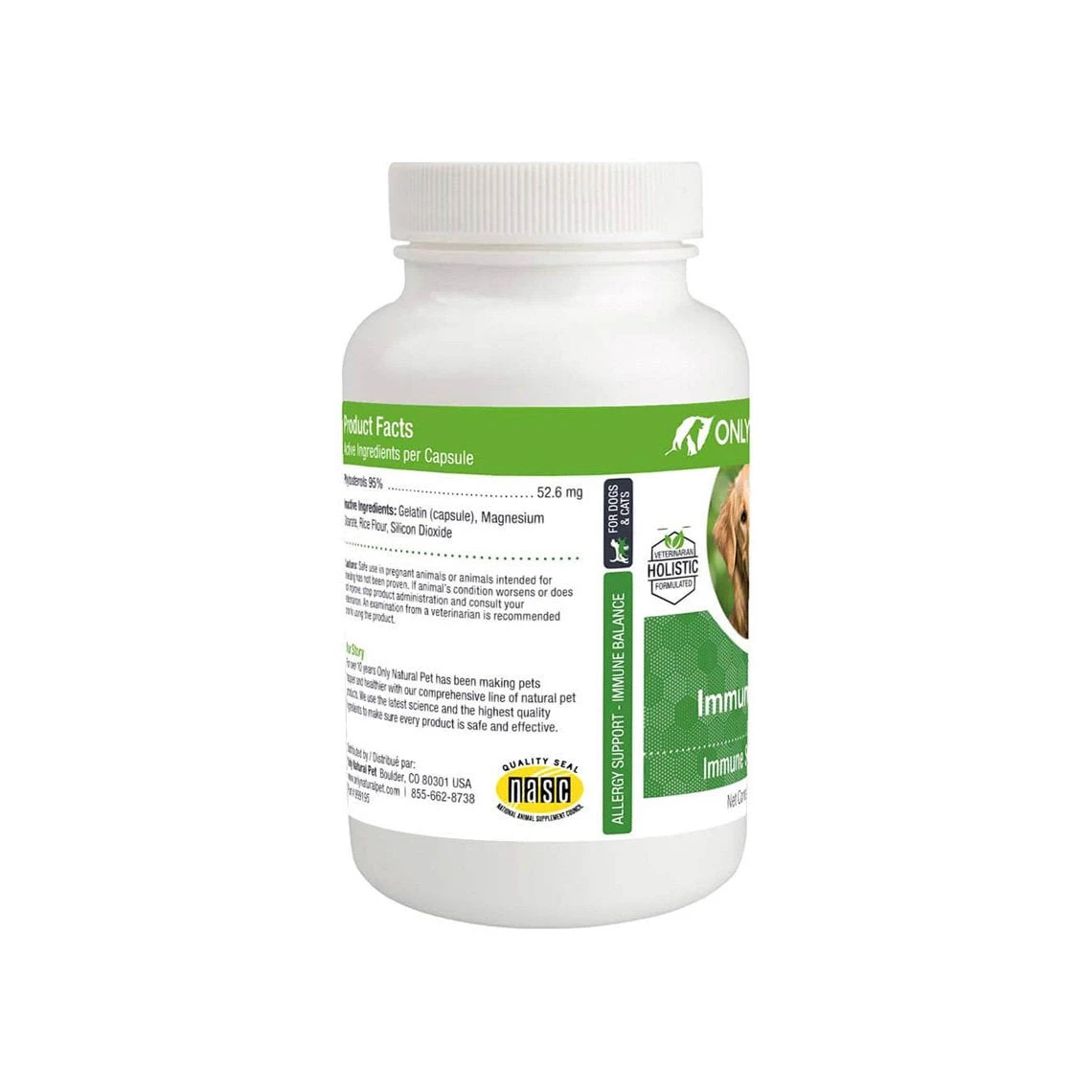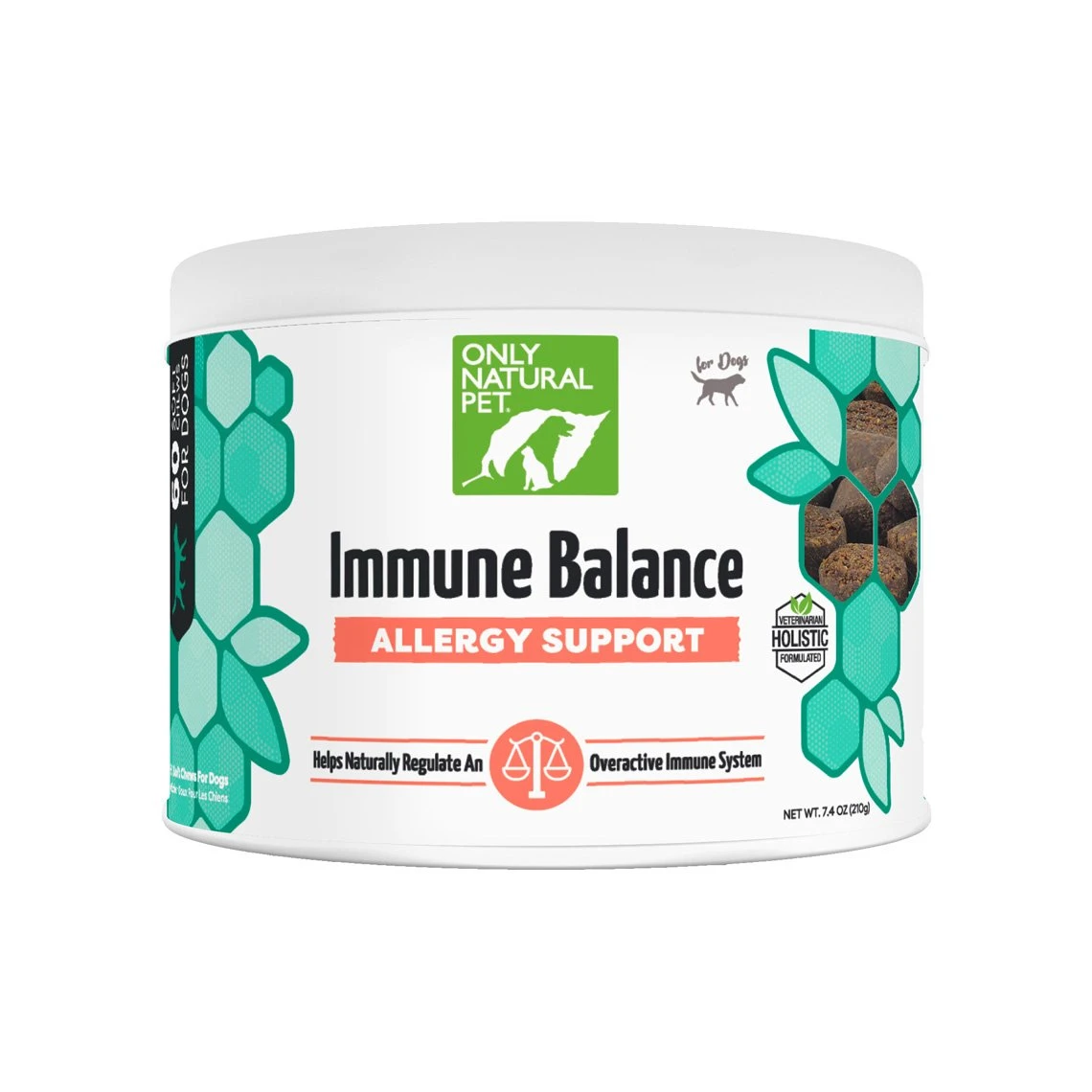 Only Natural Pet Immune Balance Allergy Support proprietary blend features phytosterols, a powerful natural compound, that helps your pet maintain a healthy balance in their immune system, all without the side effects. Whether your pet is experiencing seasonal allergies, food allergies, or other immune concerns, this allergy immune supplement for dogs & cats is ideal for excessive licking, congestion and discomfort.