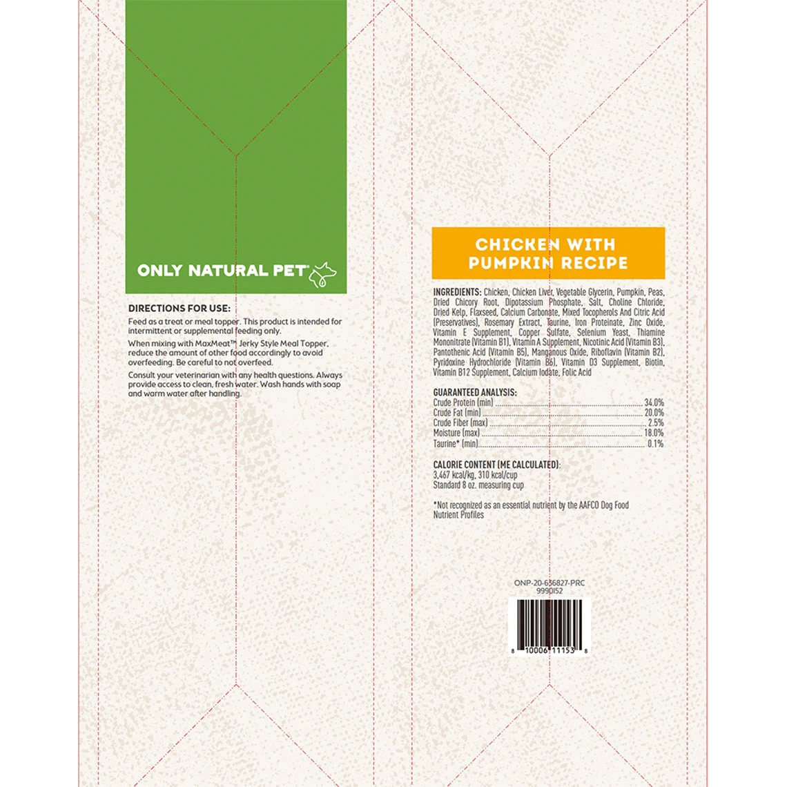 Only Natural Pet MaxMeat Chicken with Pumpkin Recipe Air-Dried Dog Food Topper gives your dog the topper nature intended. Packed with protein from cage-free chicken, along with naturally occurring vitamins, minerals, amino acids, and pumpkin for added digestive support.