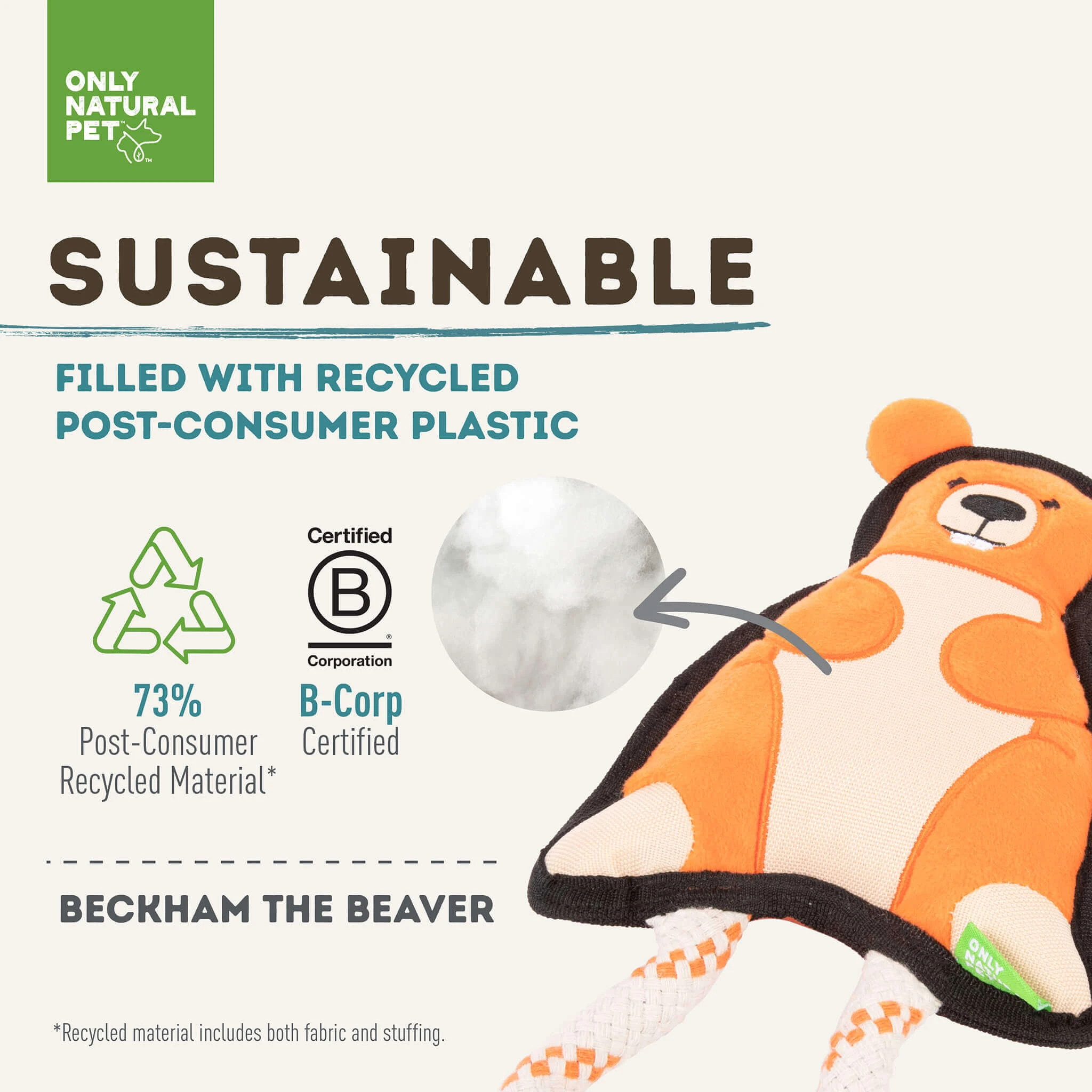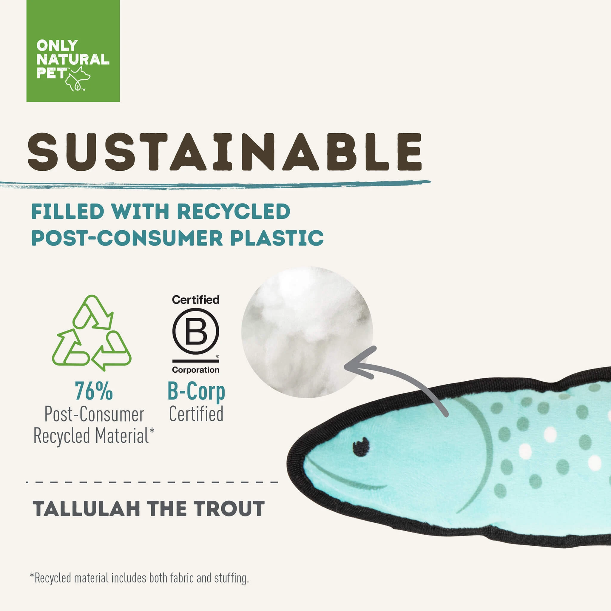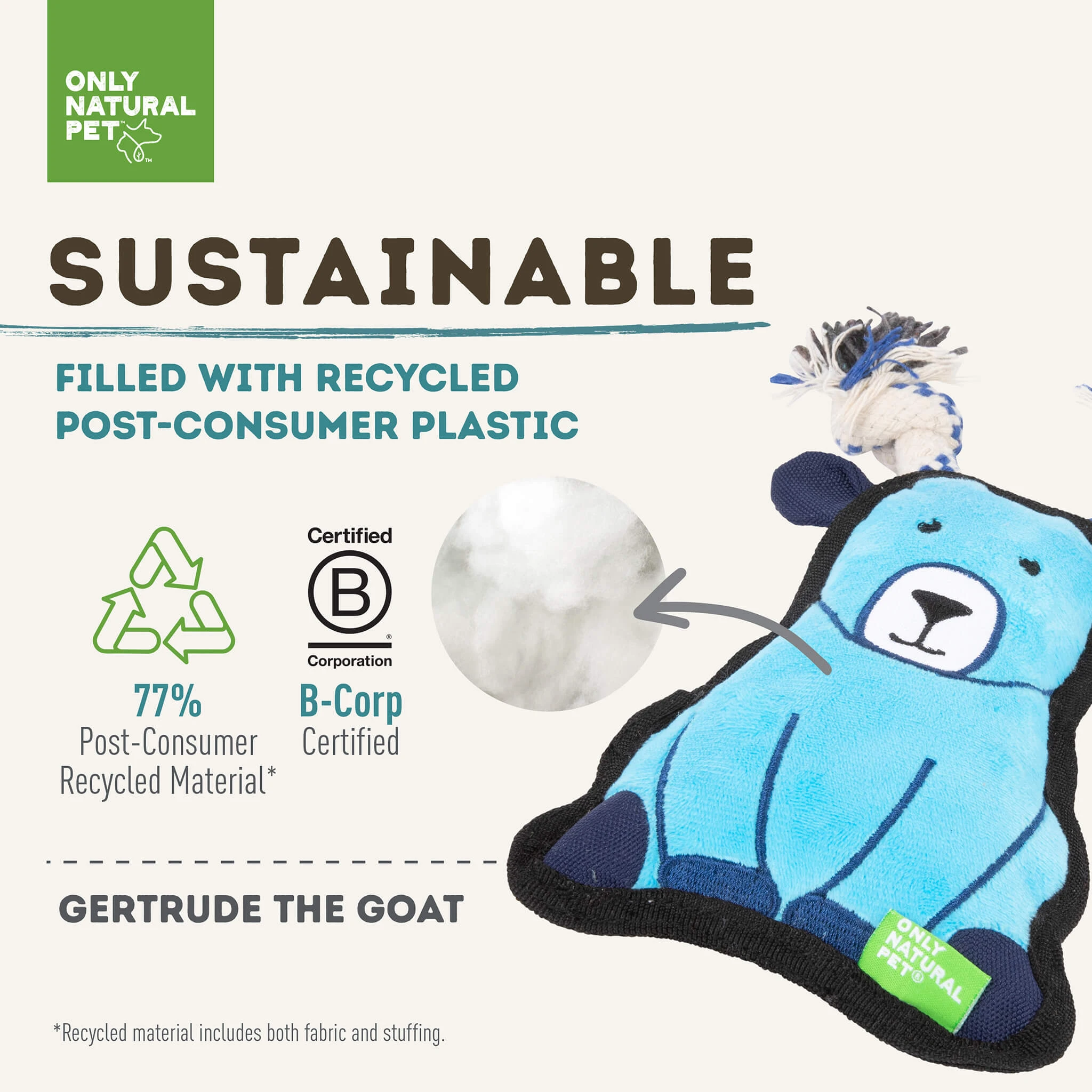 When it comes to dog toys, what’s on the inside counts just as much as a cute exterior. Made with recycled PET fill, our eco-friendly dog toys reuse what’s already on our planet, lowering our carbon footprint and repurposing what would have ended up in a landfill. Even better, each Mountain Friend is made with reinforced double-stitching to keep them intact, even if your dog tends to show their toys some tough love. So go ahead – let them chew, wrestle, and gnaw as much as they want. These sustainable dog toys can handle it!