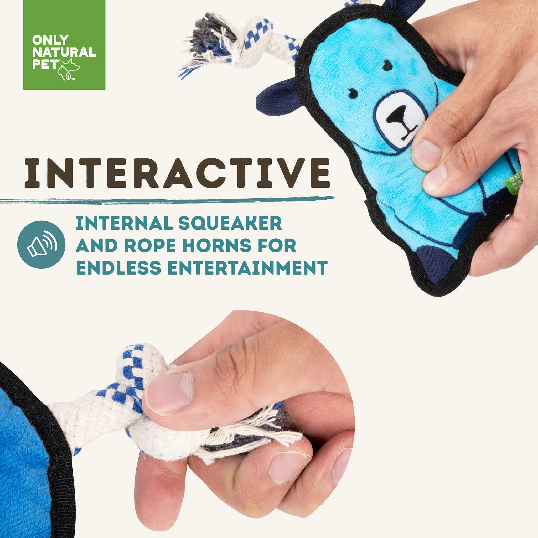 Only Natural Pet Mountain Friends Recycled Plush Dog Toys are adorable plush companions that are durable enough to withstand even the roughest play sessions. Hailing from the Rocky Mountains, these ultra-tough plush dog toys are here for a good time – and a long time! Each Mountain Friend has a personality as unique as your pet and offers multiple interactive features, like ropes, squeakers, and crinkle fabric to keep dogs engaged time and time again.