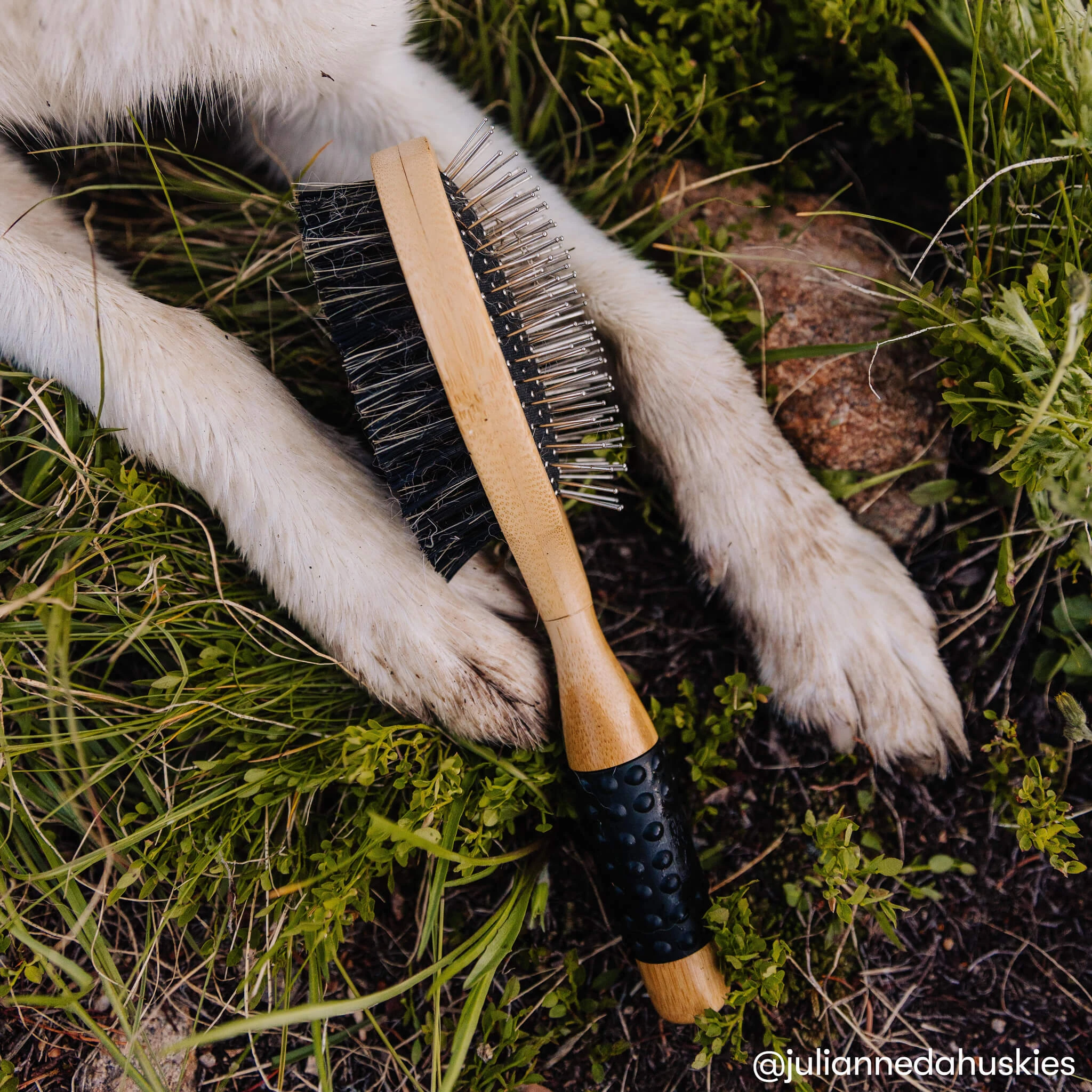 Pin & Bristle Combo Brush with Bamboo Handle for Dogs