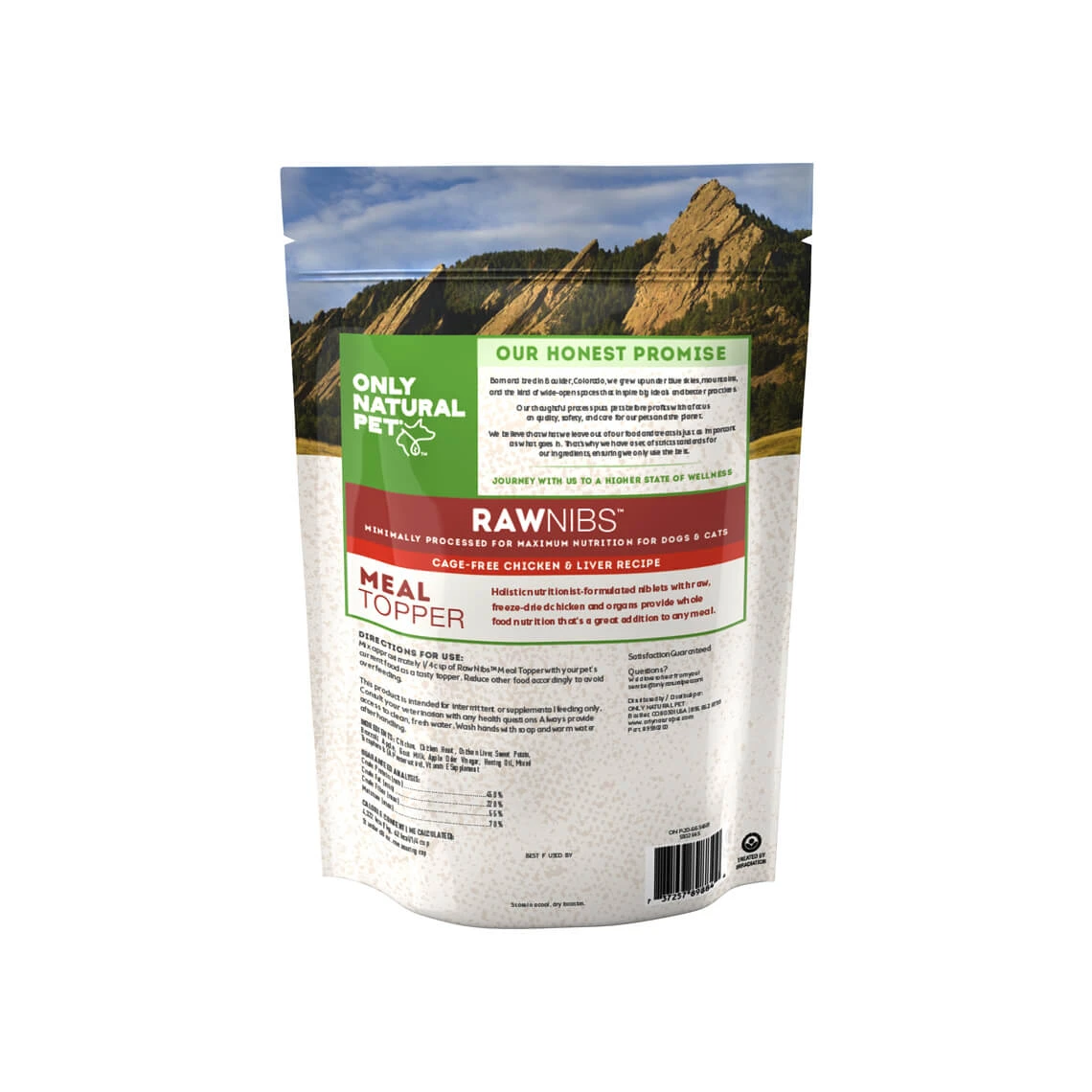 Discover the added taste and nutrition that Only Natural Pet RawNibs Freeze-Dried Chicken & Liver Recipe Meal Topper for Dogs & Cats can offer today!