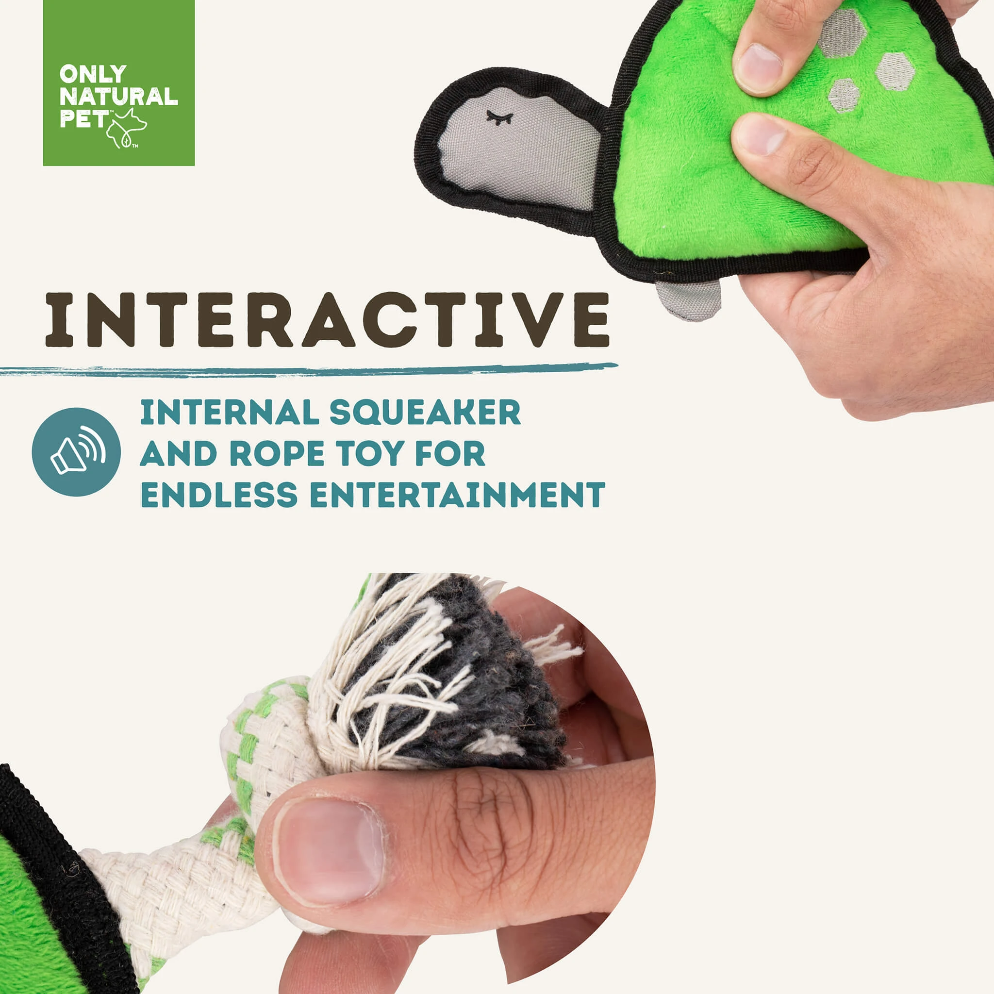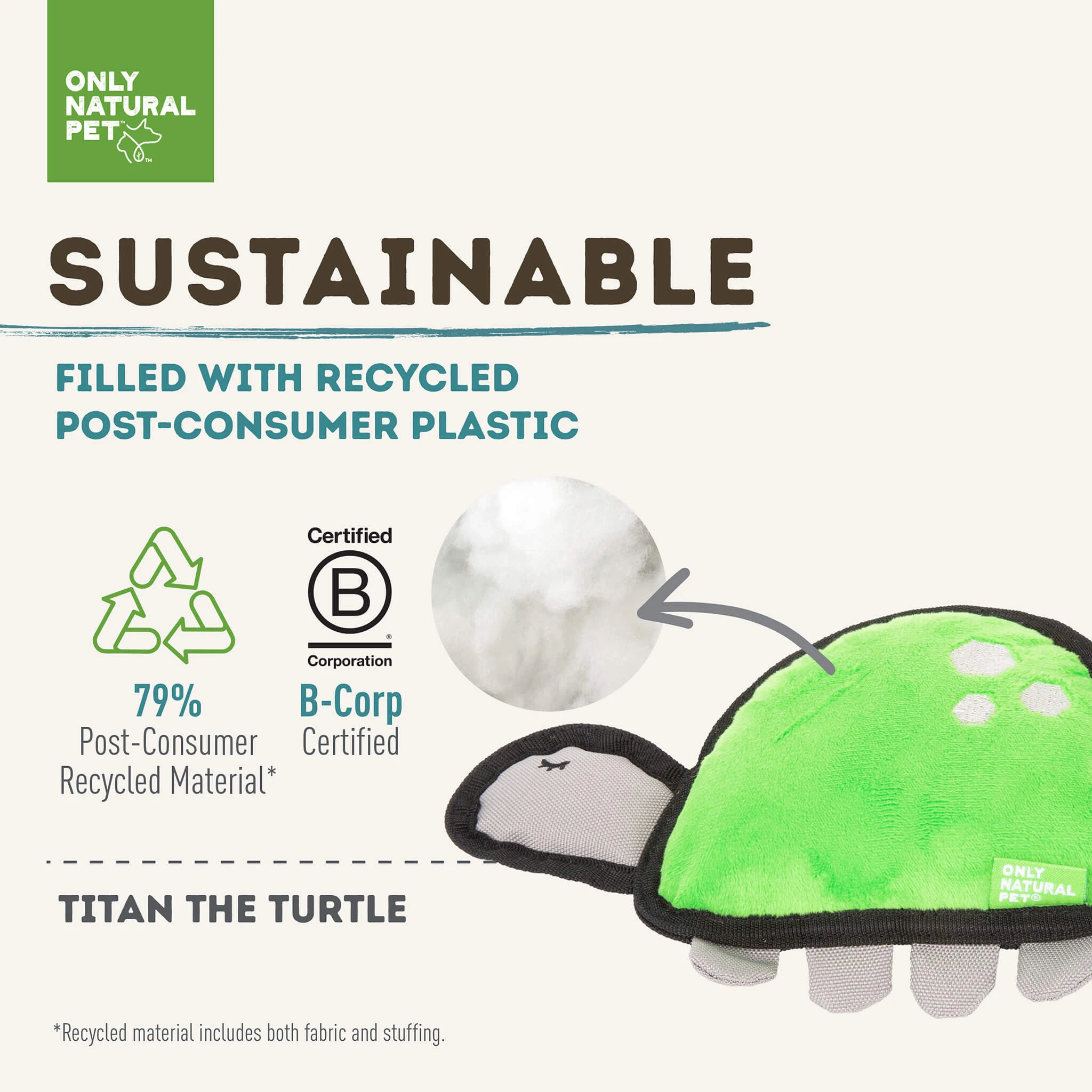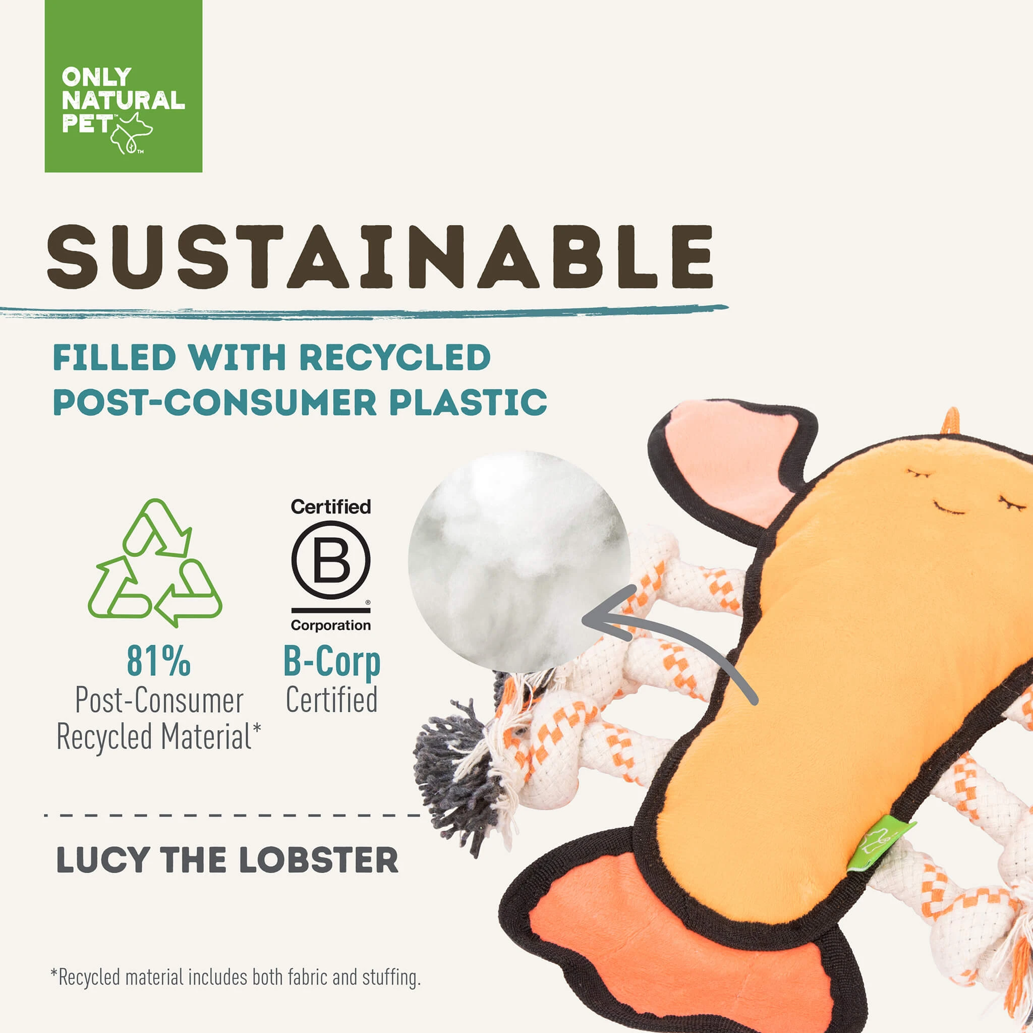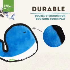 From the inside out, Only Natural Pet Sea Creatures are good for your pet and the planet! Made with recycled PET fill, these eco-friendly dog toys reuse plastic that would otherwise end up in a landfill or our oceans. Plus, we know that the most sustainable dog toys are the ones that last the longest – which is why each toy is double-stitched to keep them intact through the roughest play sessions. Whether your dog likes to chew, thrash, tug, or wrestle, these durable plush toys can handle it!