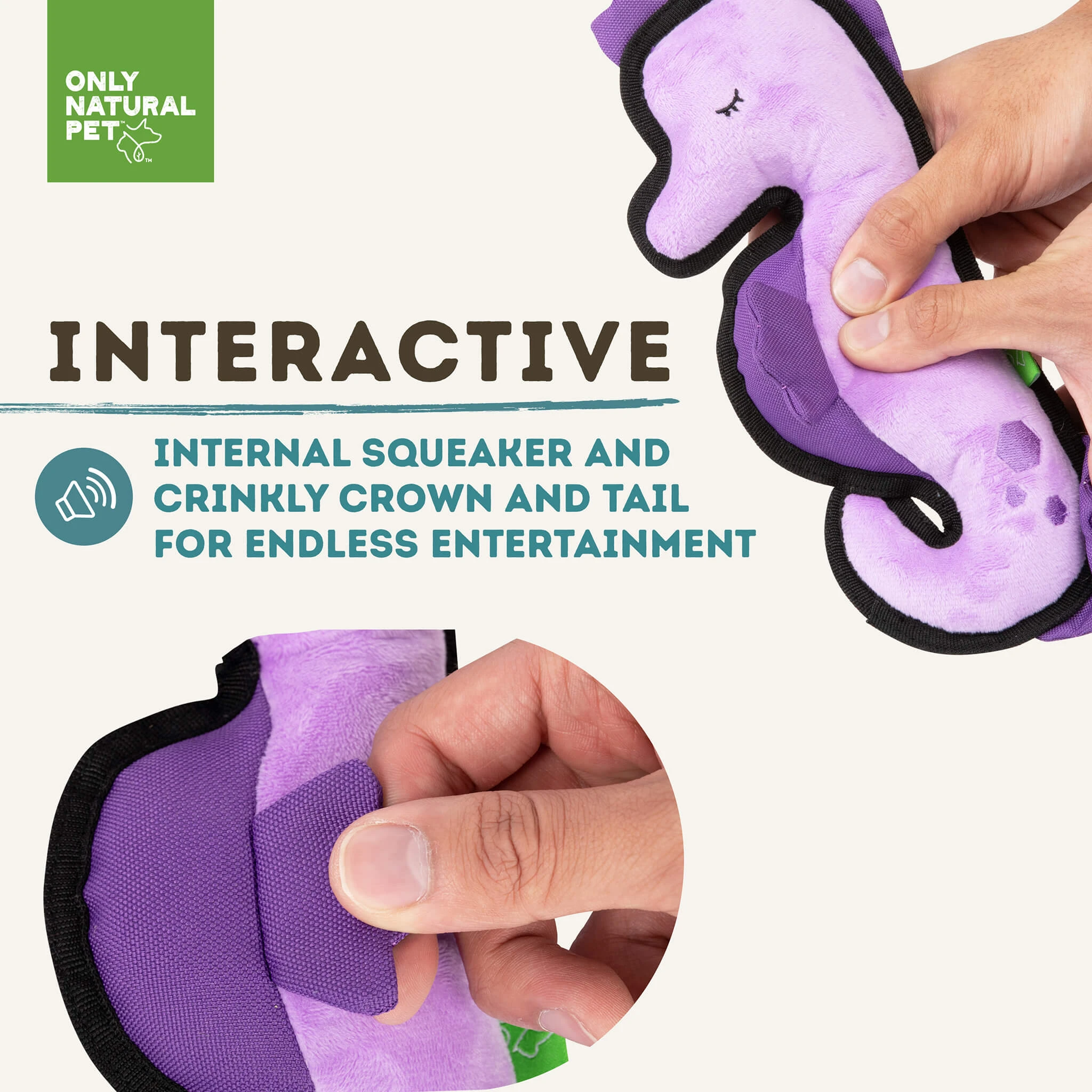 Only Natural Pet Sea Creatures Recycled Plush Dog Toys are charming plush toys that are tough enough to stand up to all of life’s adventures. From the deepest depths of the ocean, these ultra-durable dog toys have surfaced for a boatload of fun. Each Sea Creature has its own unique personality and multiple play features, like rope pulls, crinkle, and squeakers, to keep tails wagging and good times rolling.