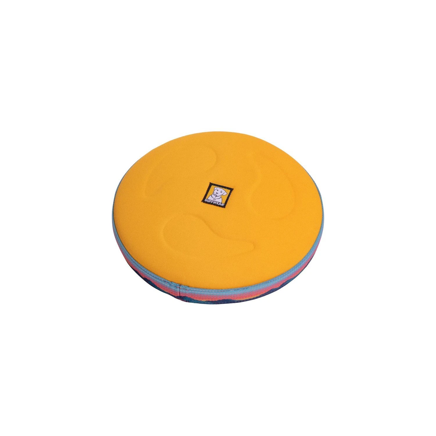 Ruffwear Hover Craft Toy for Dogs is built with a molded foam core that tracks true for long-distance tosses and floats in water. The construction is soft on teeth and gums yet structured enough to maintain its shape over time. Bright colors and a reflective trim enhance visibility for easy tracking in the air and low-light conditions.