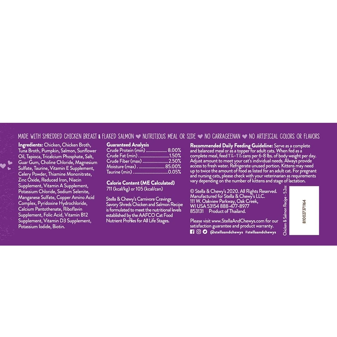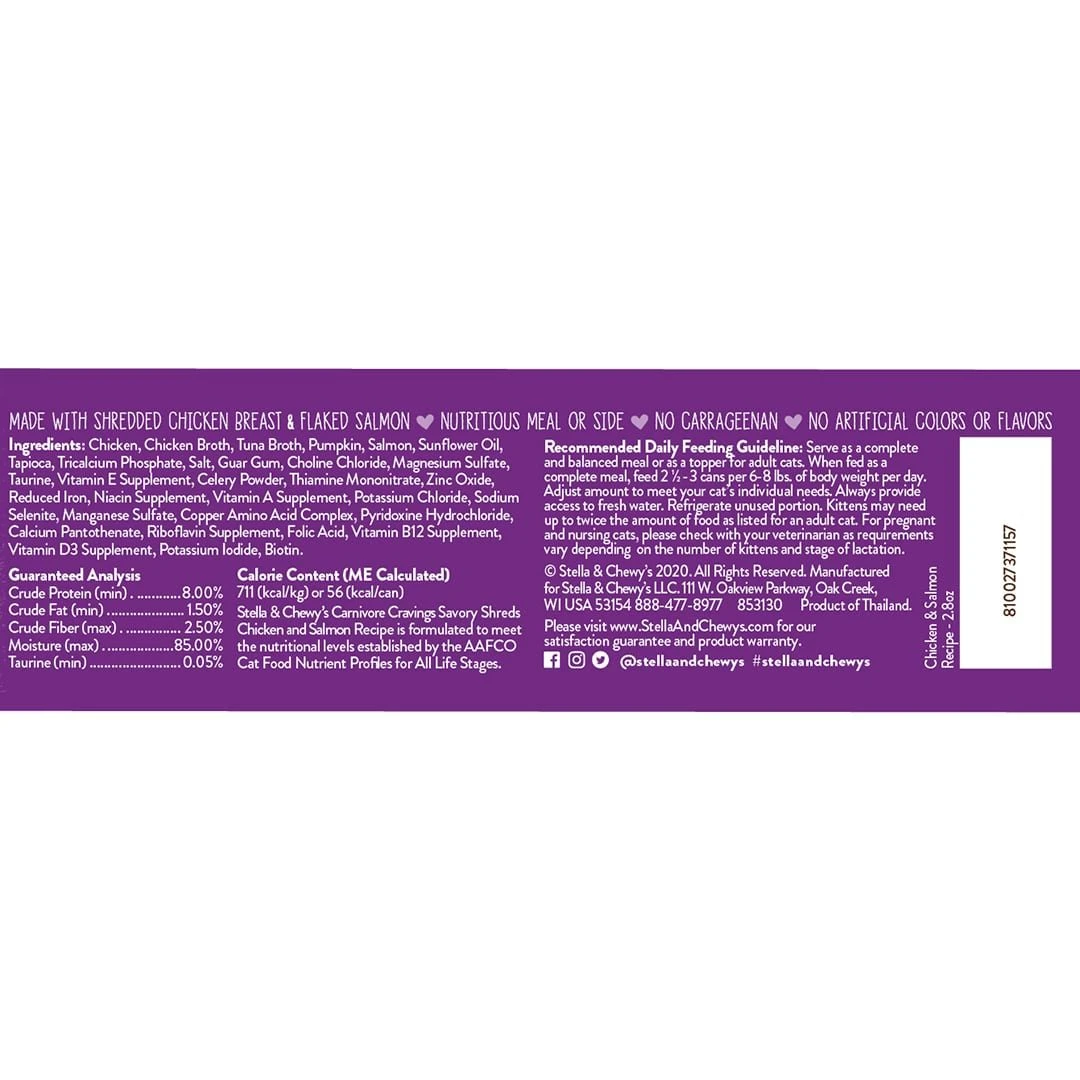 Stella and Chewy’s Chicken and Salmon Shredded Wet Cat Food is sure to become your cat’s new favorite wet food!