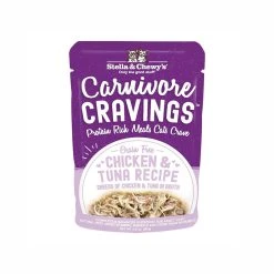 Stella & Chewy Carnivore Cravings Wet Cat Food is a pea-free, lentil-free and grain-free highly hydrating cat food. This food is meat packed featuring cage-free poultry and Wild Caught fish.Â