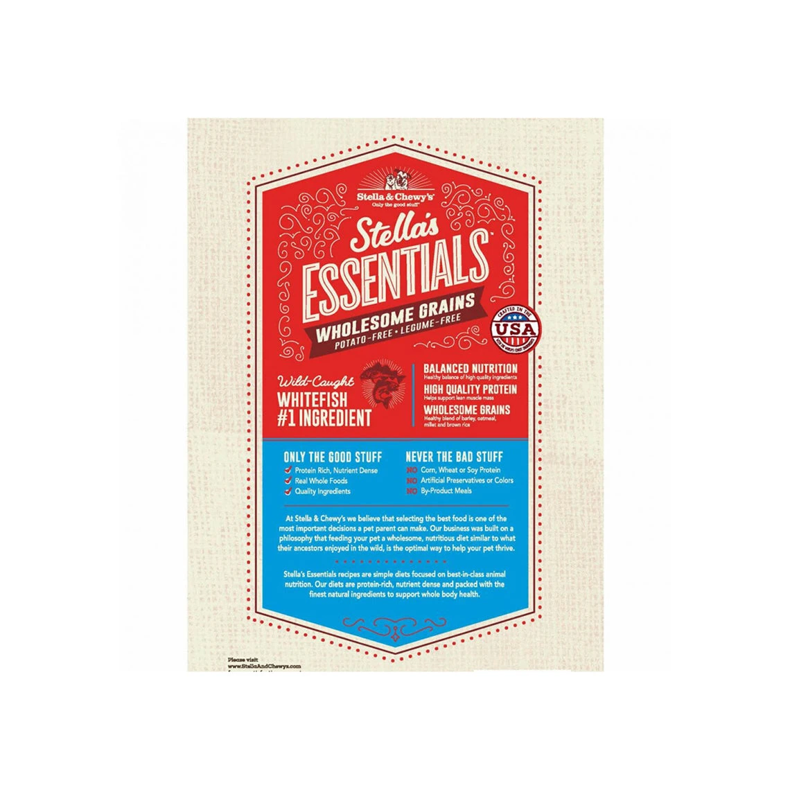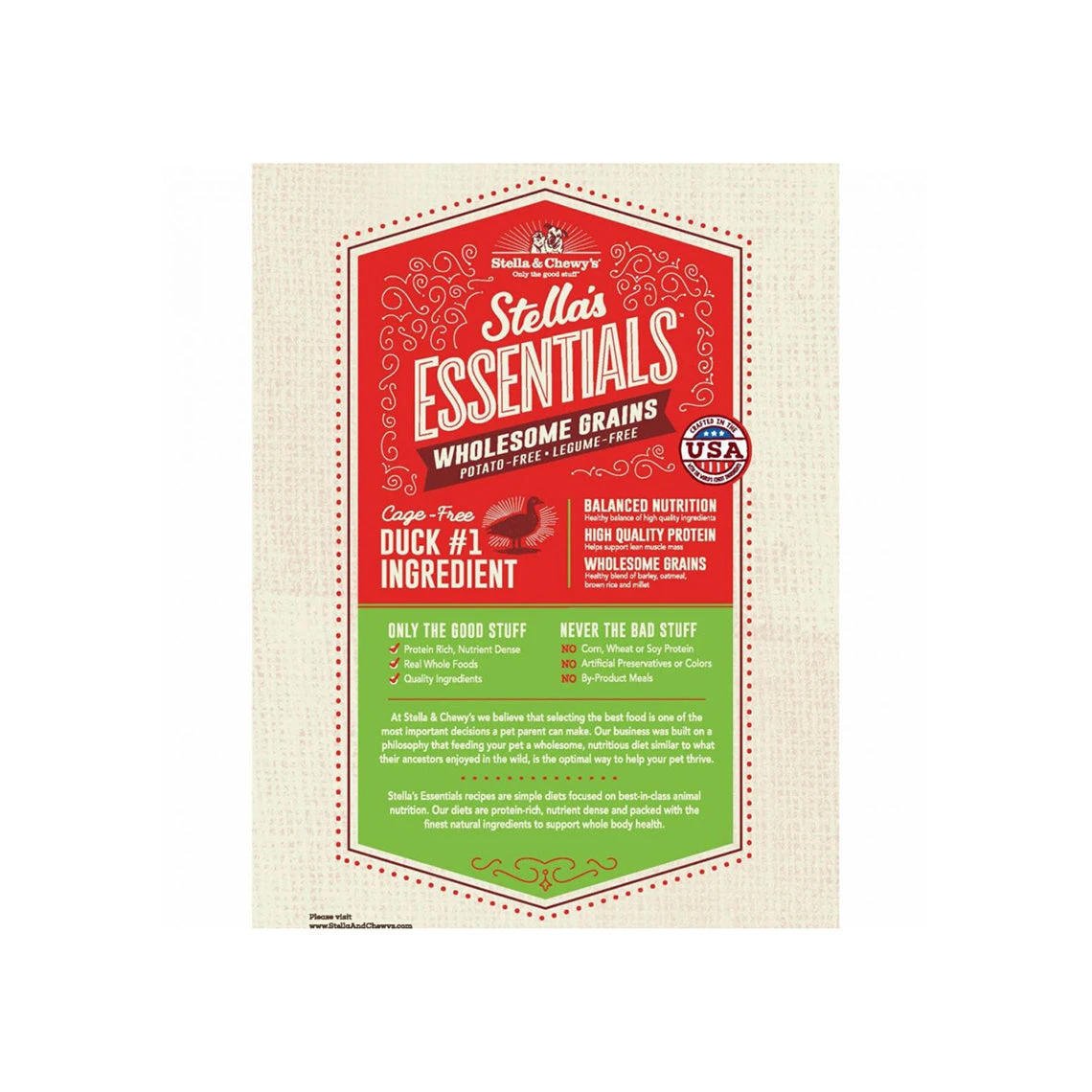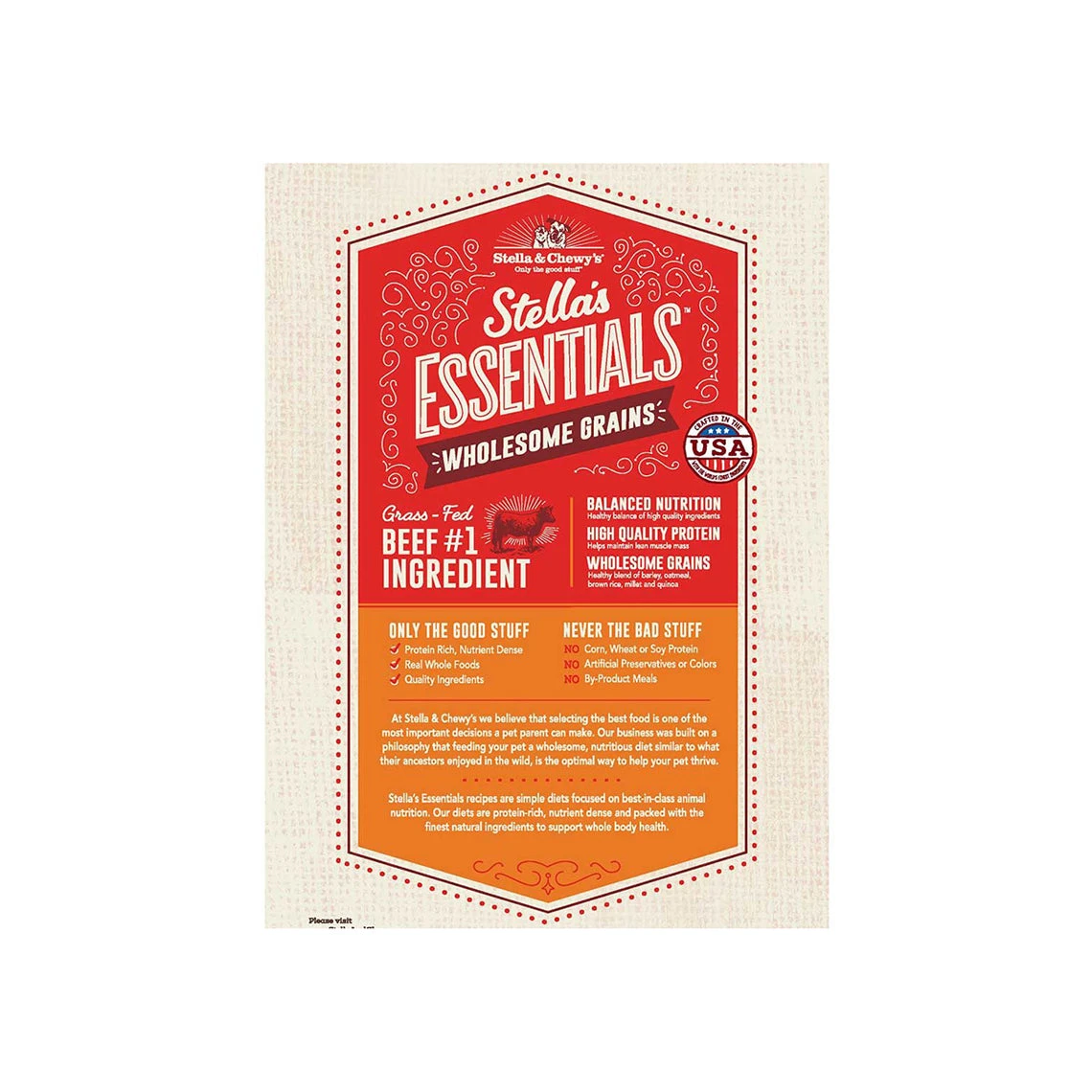 Stella & Chewy’s Essentials Ancient Grain Dry Dog Food features high quality ingredients with added supplements for optimal health. This ancient grain dog food uses responsibly sourced proteins and wholesome grains including pearled barley, oatmeal, brown rice, and millet. Glucosamine and chondroitin are added in industry leading levels to support joint health in order to keep your dog active and feeling good. Taurine levels are guaranteed and aid in your dog’s cardiovascular health.