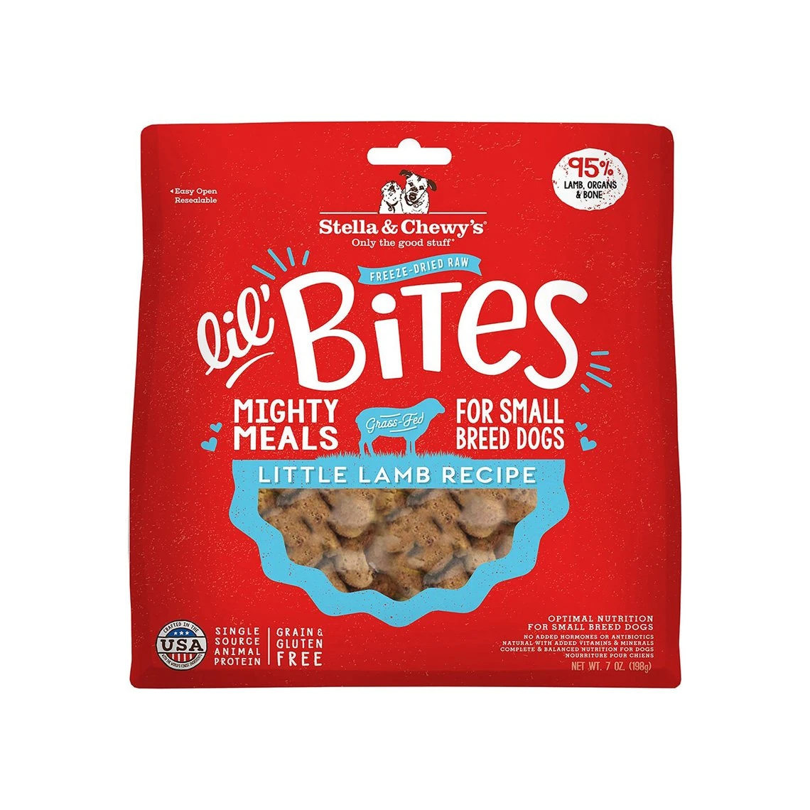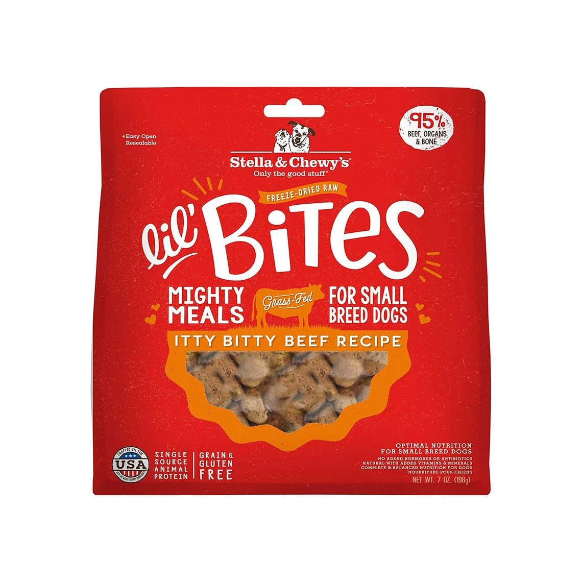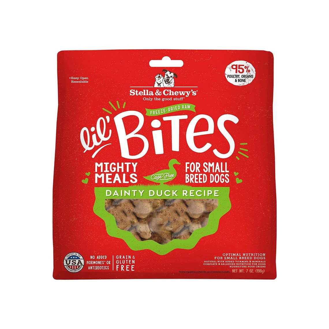 Stella & Chewy’s is made safely in the United States and never contains added hormones or antibiotics, grains, gluten, corn, soy, eggs, artificial preservatives or colorings.