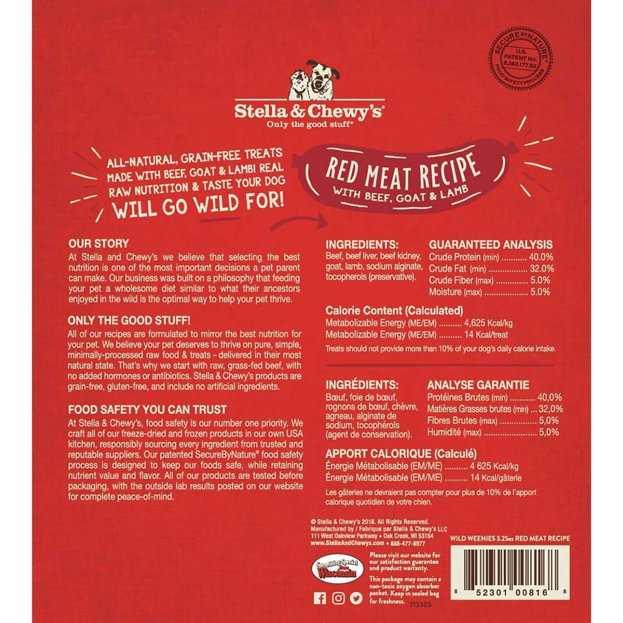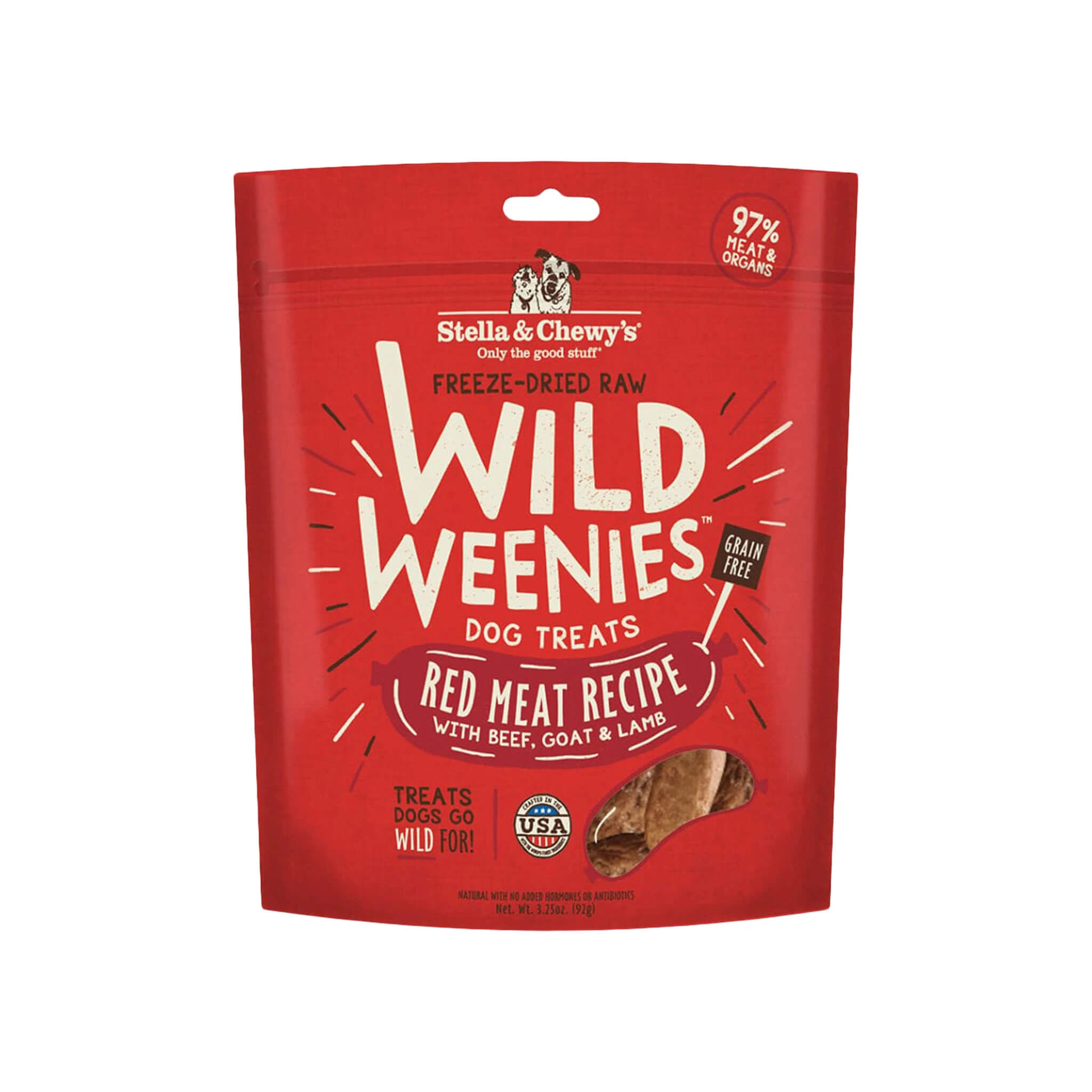 Stella & Chewy’s Wild Weenies are a freeze-dried raw, high reward treat featuring 97% meat and organs with no fillers! Crafted in Stella & Chewy’s Wisconsin kitchen, these treats are grain-free and gluten-free and use only high quality meat ingredients from trusted farmers and ranchers.