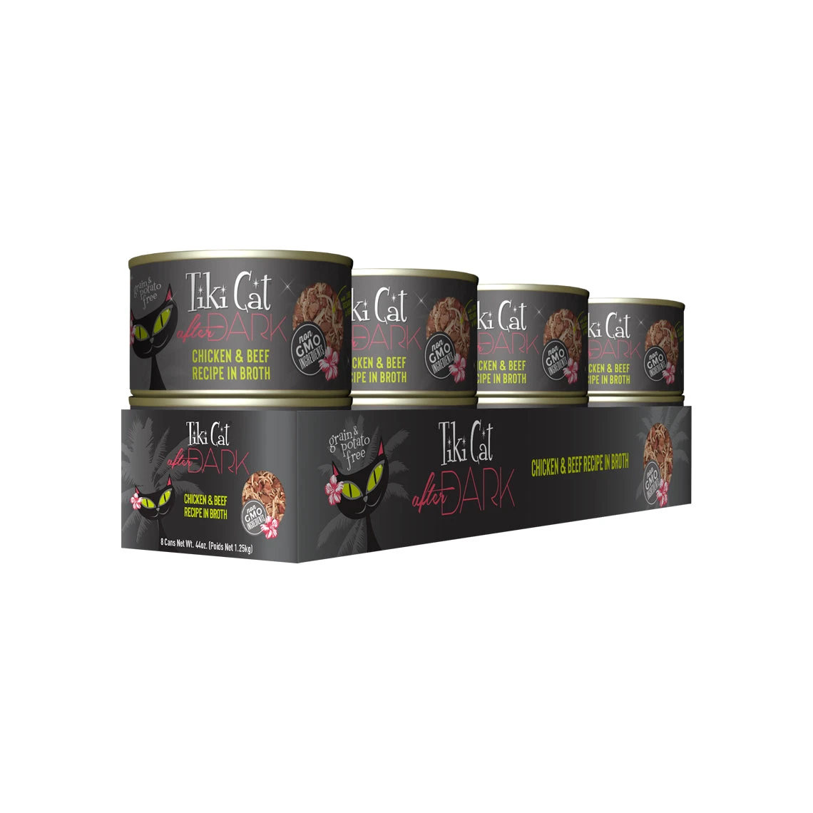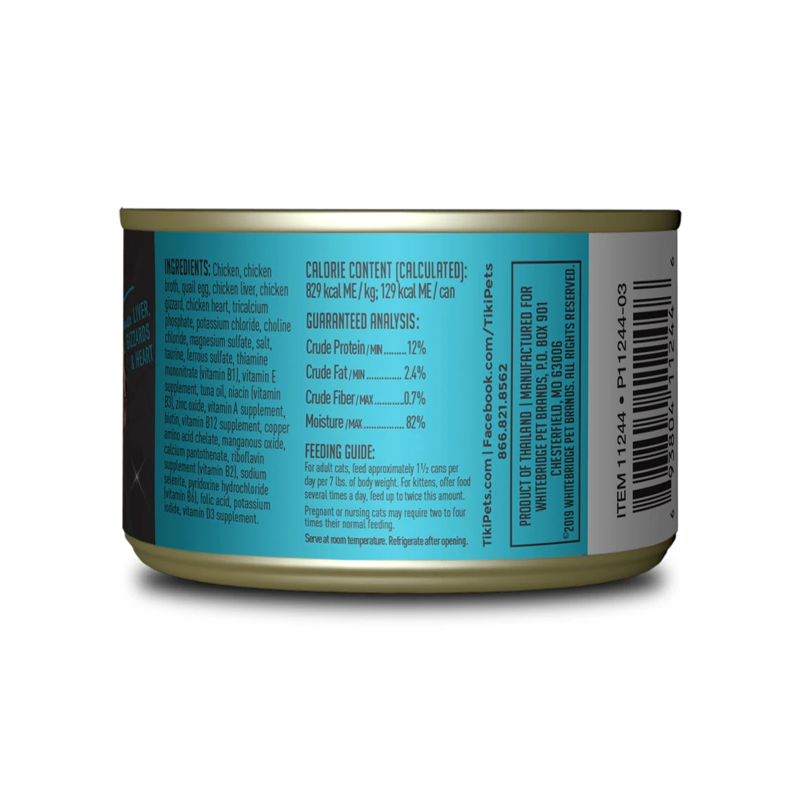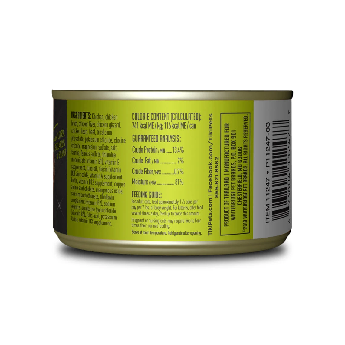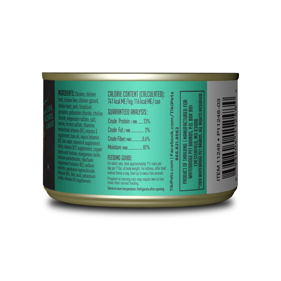 Tiki Cat After Dark Canned Cat Food features delicious shredded meats with chunky liver, gizzards, and heart for added hydration, texture, and flavor.