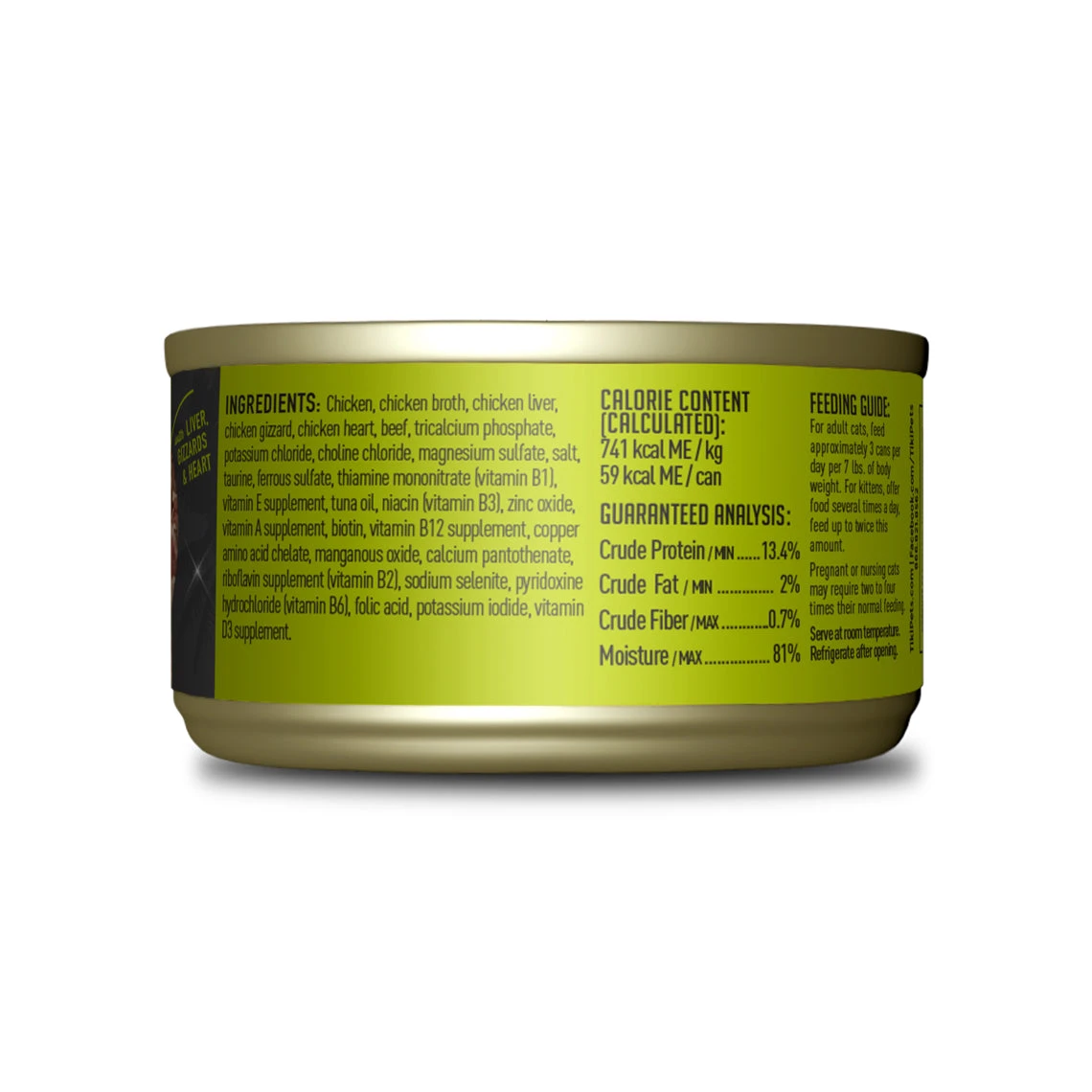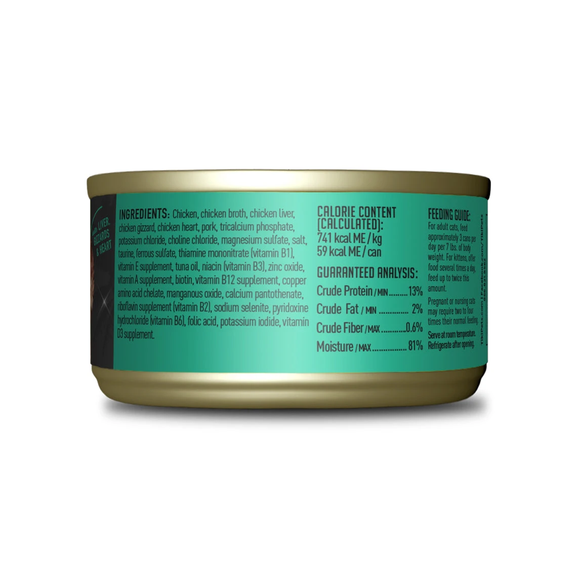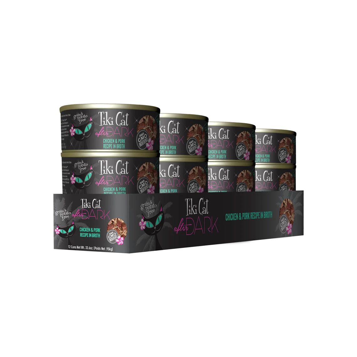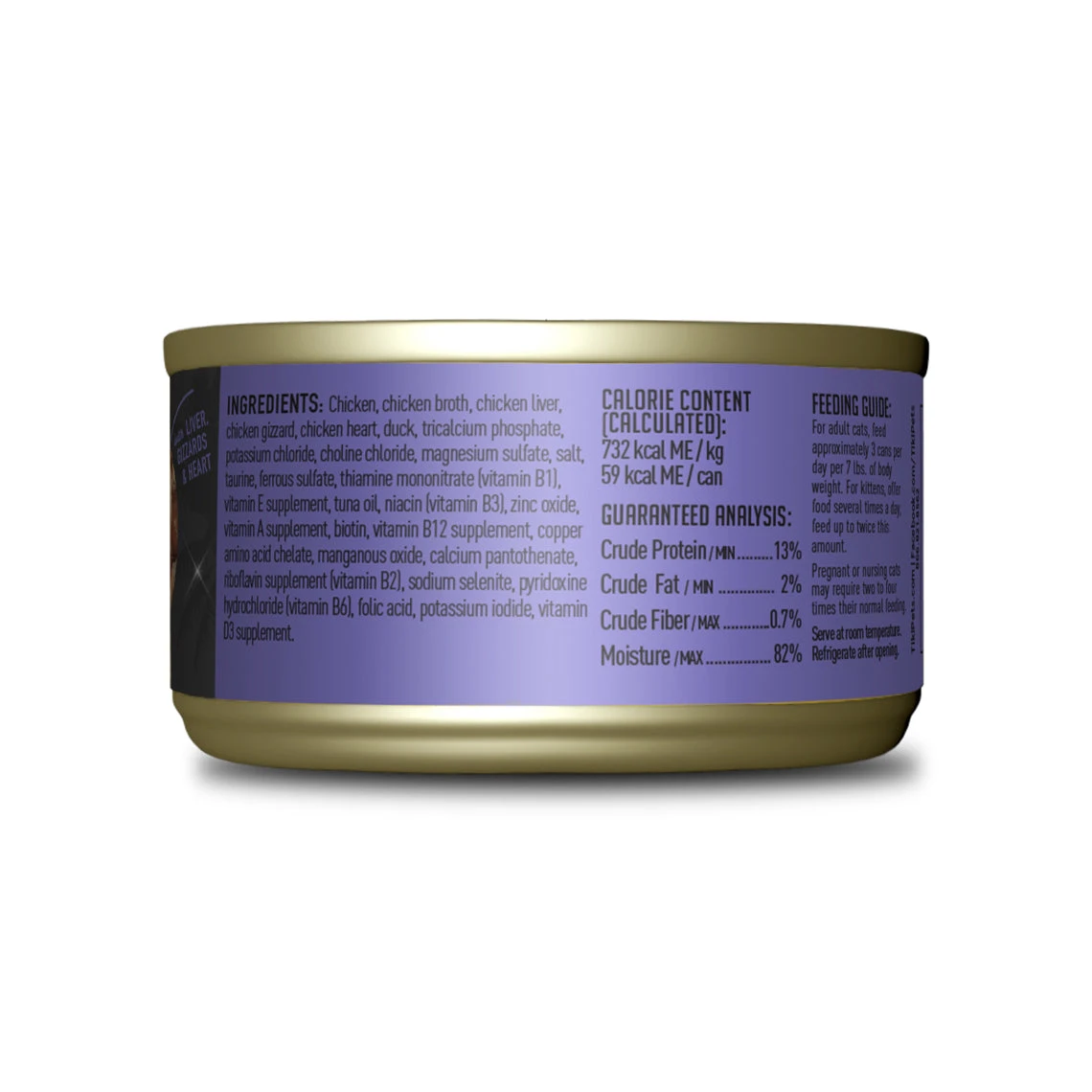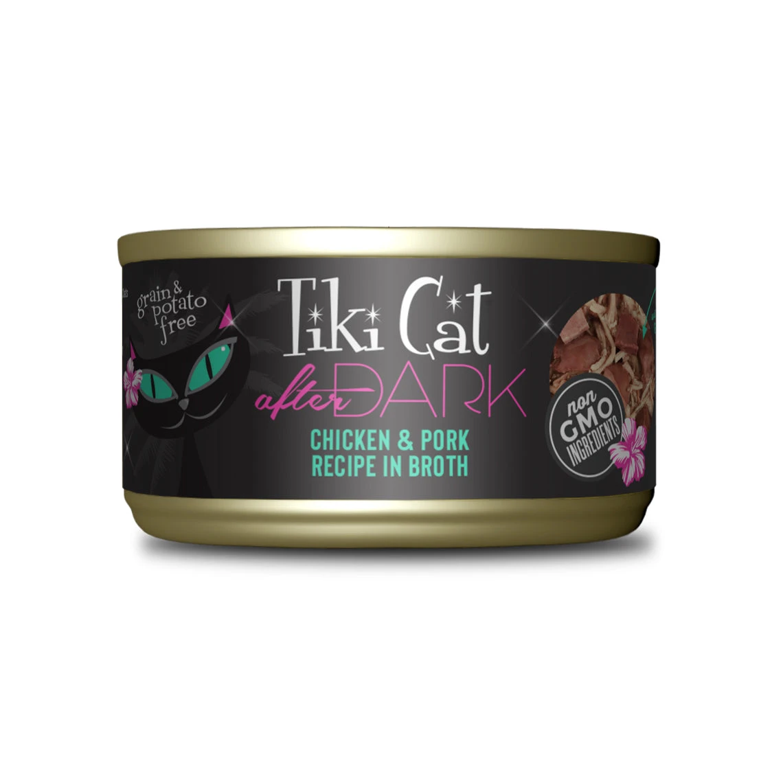 Tiki Cat After Dark Canned Cat Food features delicious shredded meats with chunky liver, gizzards, and heart for added hydration, texture, and flavor.