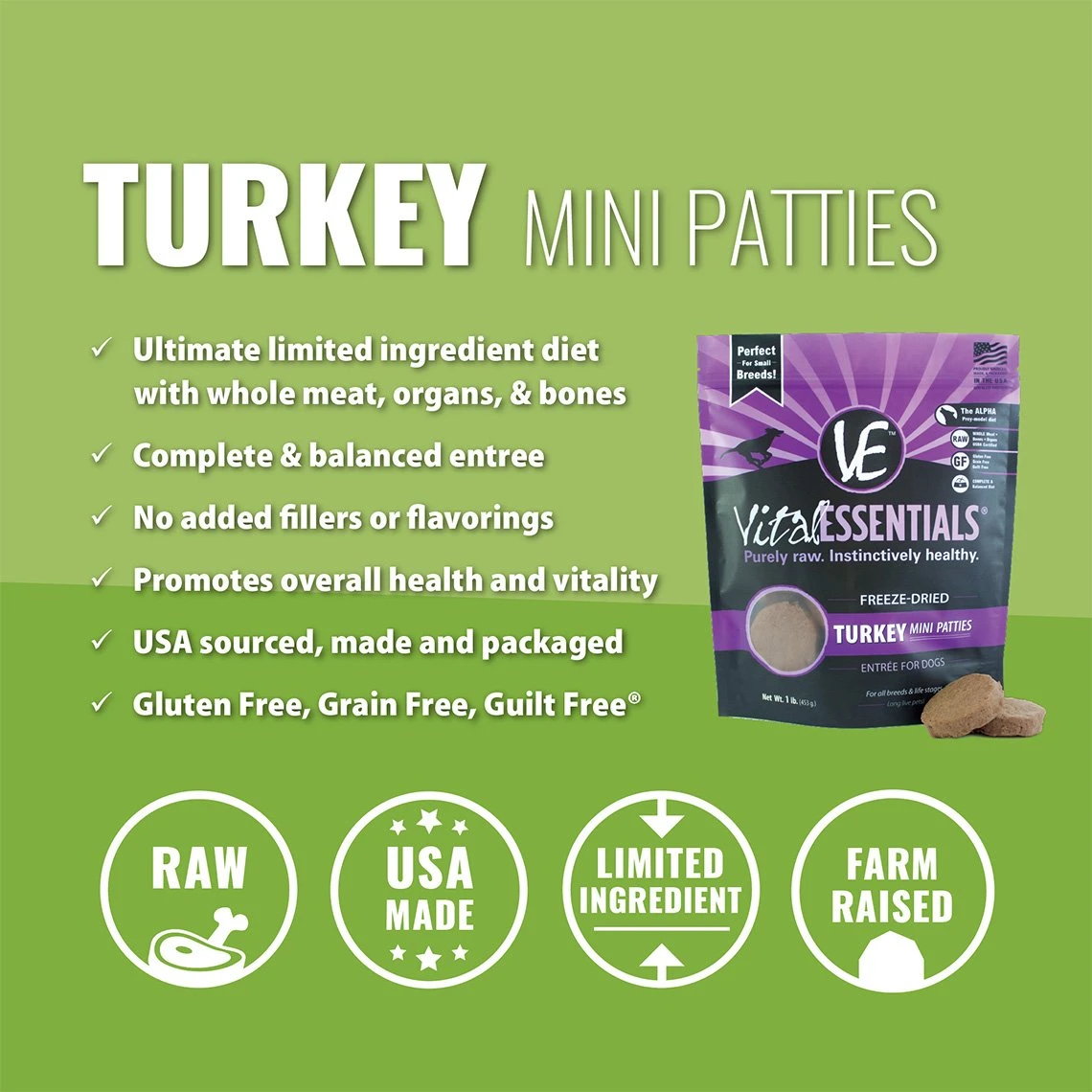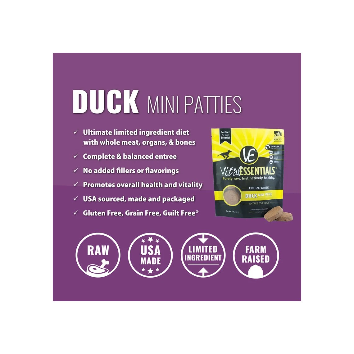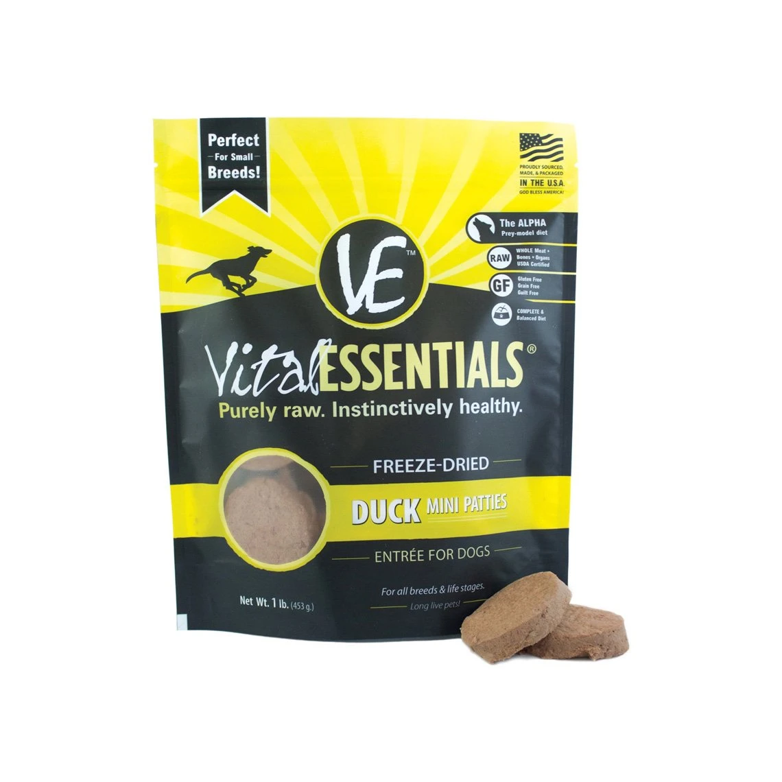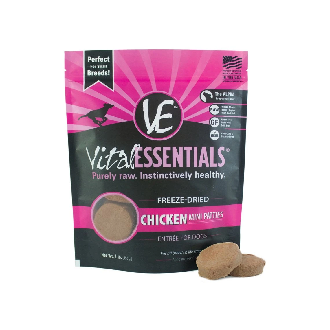 Made from the freshest, high quality, USDA meats, meaty bones and whole organ meats, you will never find grains, fillers, preservatives, coloring or rendered by-products in any Vital Essentials Freeze Dried Mini Patties.