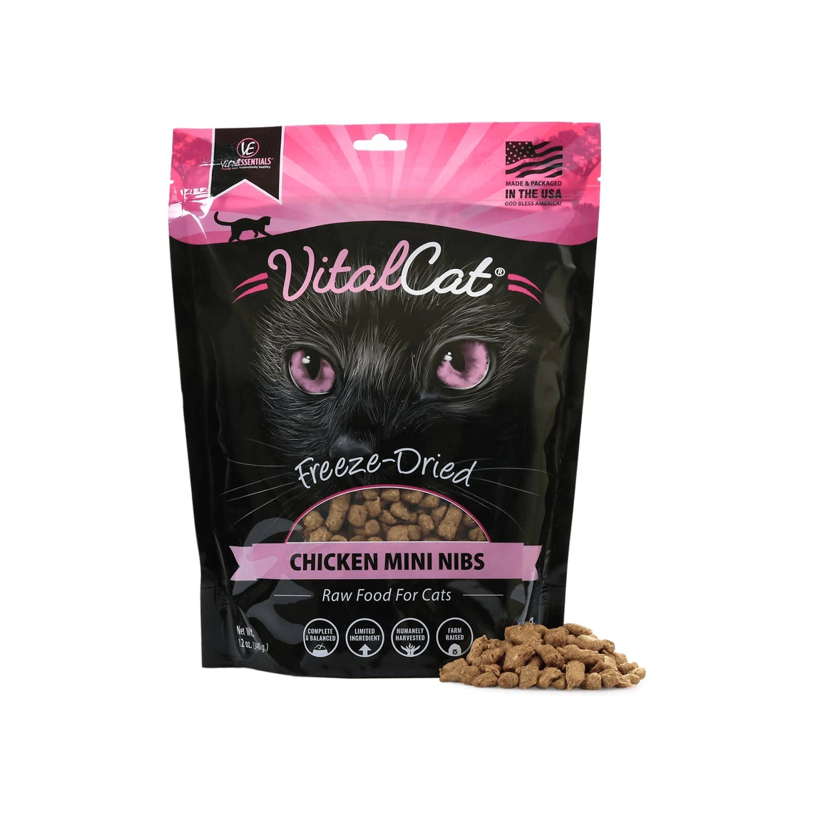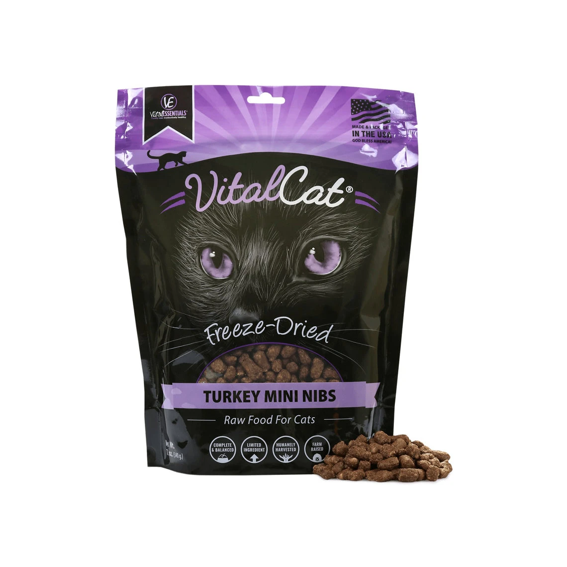 In addition to promoting your cat’s overall health, Vital Essentials Freeze Dried Mini Nibs raw diet also supports and maintains a healthy digestive system, strong bones, shiny coats, healthy skin, clean teeth, and weight control. Imagine offering a natural, delicious solution that makes your pet healthy and happy.