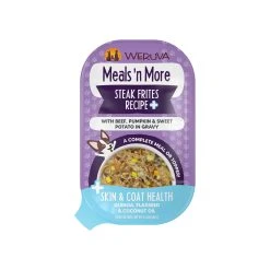 Weruva’s Skin and Coat Dog Food is high in protein, low in fat and high in moisture. Meals n’ More are a complete and balanced meal or can be used as a topper!