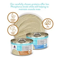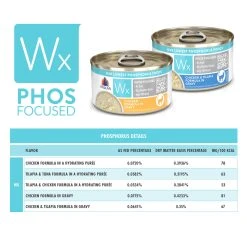 Weruva Wx Low Phosphorus Cat Food is the perfect cat food for cats with kidney issues. Using carefully selected animal based proteins that have naturally low phosphorous levels, your cat still gets the protein they need without the phosphorus they do not need. This low phosphorus cat food is free from artificial flavors and hydration focused to make sure your cat does not get dehydrated.