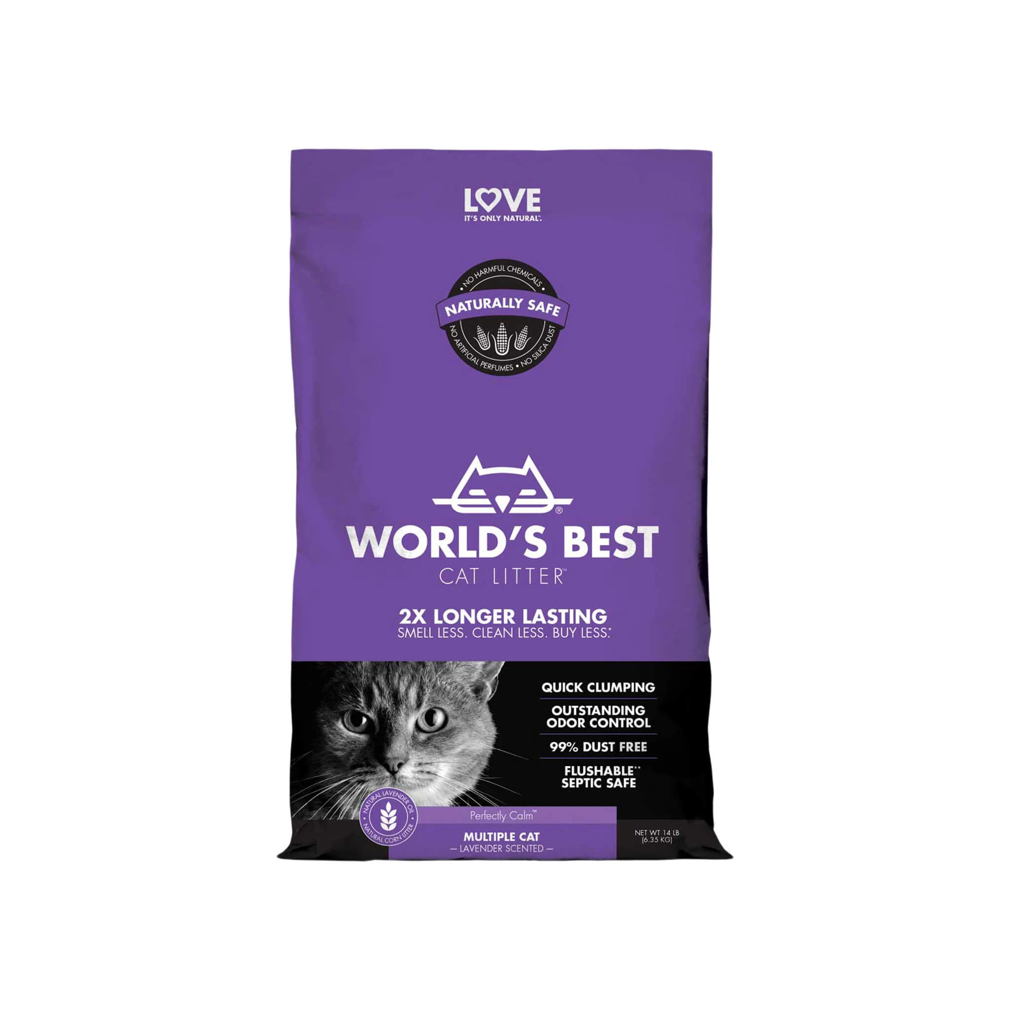 World’s Best Cat Litter contains no chemicals, perfumes, clays, silicas, bentonite, or any synthetic substances whatsoever. What there is…is corn. Good, old-fashioned, whole-kernel corn. Right out of the Midwest, where great ground grows great things. This Extra Strength formula provides stronger odor control for multi-cat households.